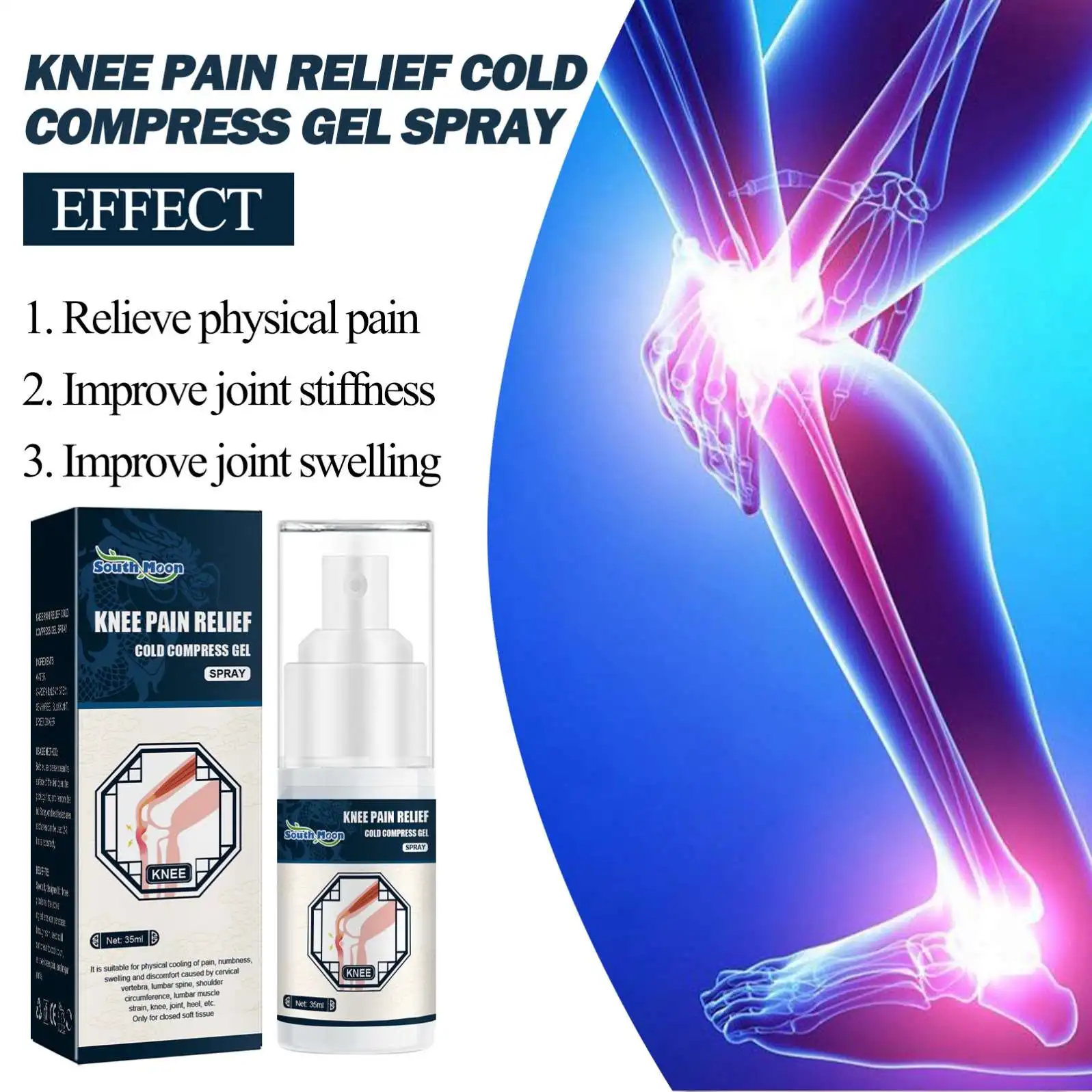 Wholesale Knee Massager Pain Relief Spray Get Rid of Calf and Joint Pain Cold Compress Spray for Old Age Athlete 35ml