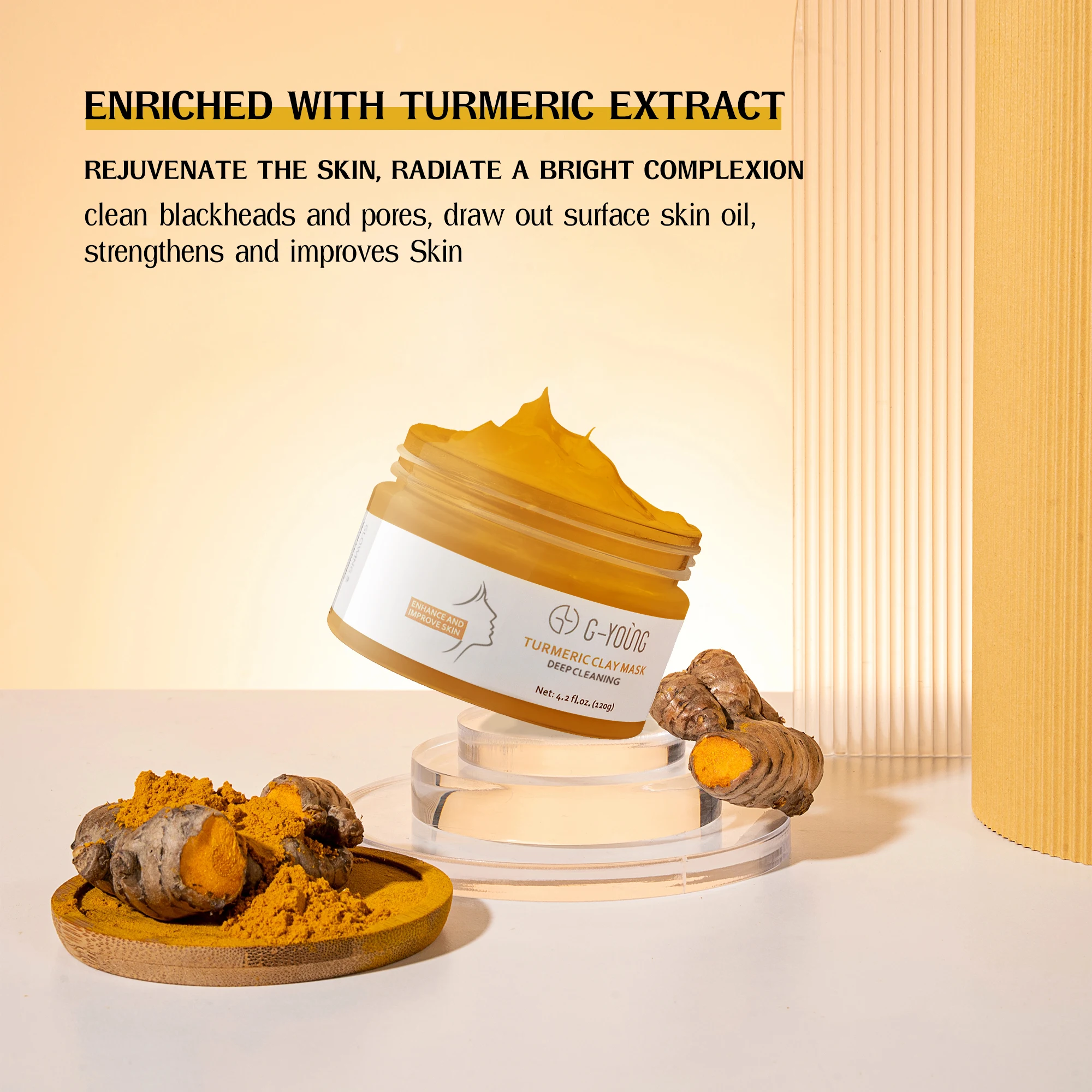 Natural Organic Turmeric of Moisturizing and Firming Facial Cleansing Blackhead Remover Whitening Exfoliating Face Mud Clay Mask