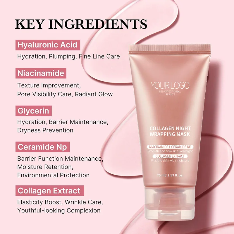 Private Label Anti-Wrinkle Firming Night Wrapping Gel Collagen Niacinamide Infused Sheet for Deep Hydration Brightening Herbal