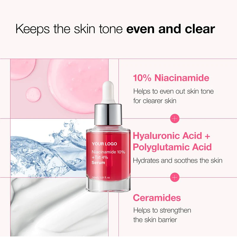 OEM Private Label 4% TXA + Niacinamide Face Serum 30ml Organic Anti-Aging Whitening Hydrating Treatment for Women Body Targeted