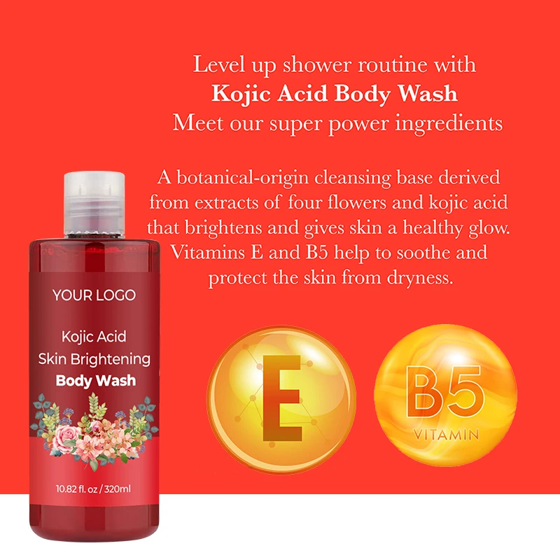 Soothing Brightness Kojic Acid & Jasmine Body Wash Whitening Shower Gel for Sensitive Skin & Relaxing Aromatherapy