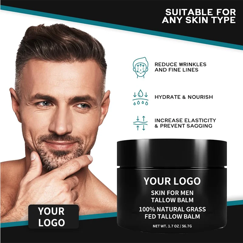 Men's & Women's 3-in-1 Tallow & Avocado Face Cream 24H Hydration Anti-Aging Beard Conditioner Organic Unisex Skincare Aloe Vera