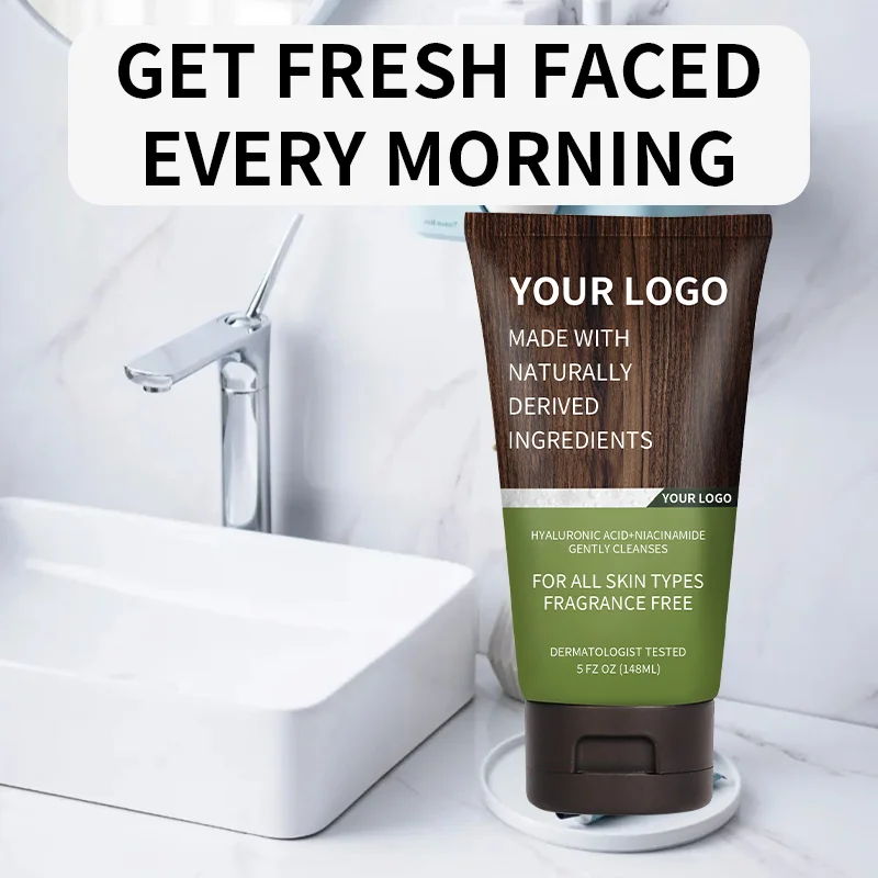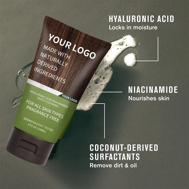 Wholesale Custom Men's Hydrating & Detox Facial Cleanser with Hyaluronic Acid & Charcoal Deep Pore Cleansing