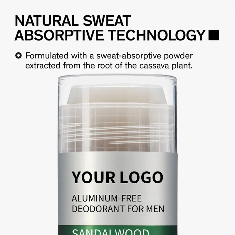 Luxury Men's Deodorant Stick Cassava Root and Sandalwood Non-Residue Mineral-Based 48H Odor Defense with Wetness Control