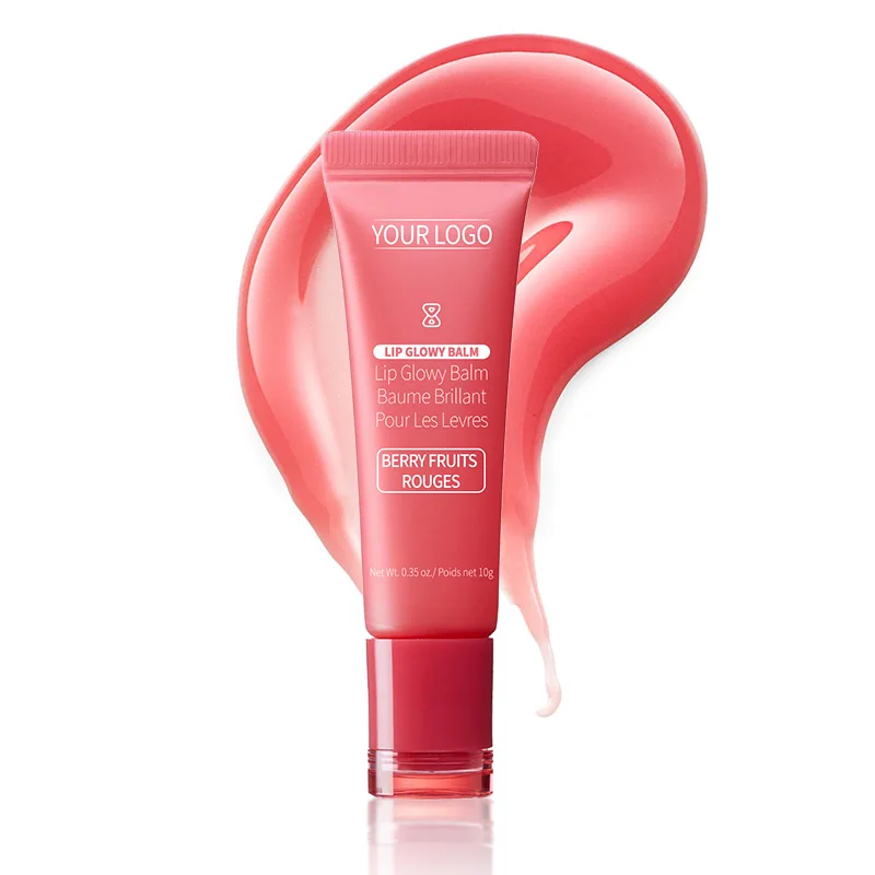 Custom Logo Private Label Vegan Tinted Gloss Collagen Strawberry Lip Balm Vitamin E Herbal Plumping Hydrating Soft Pink Finish