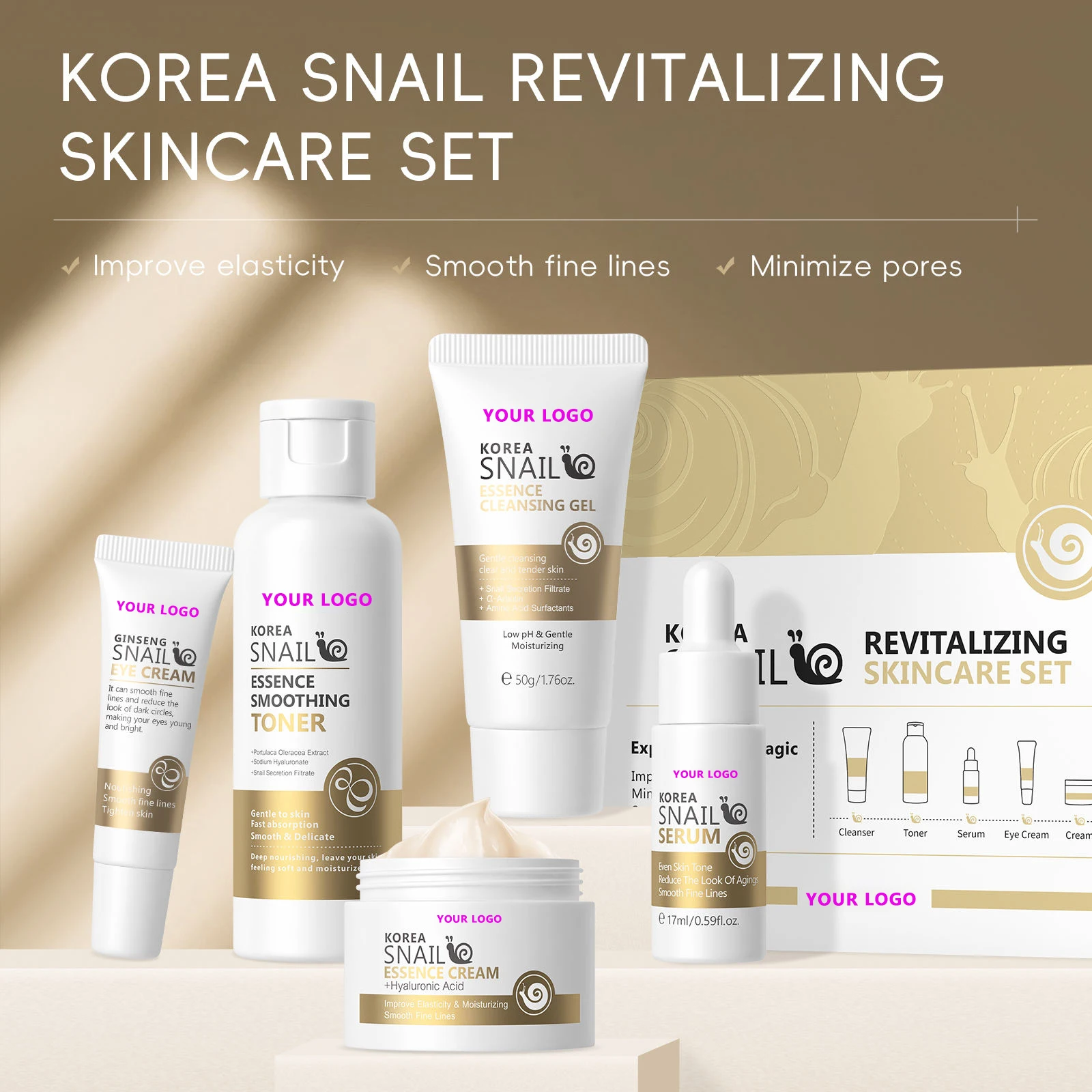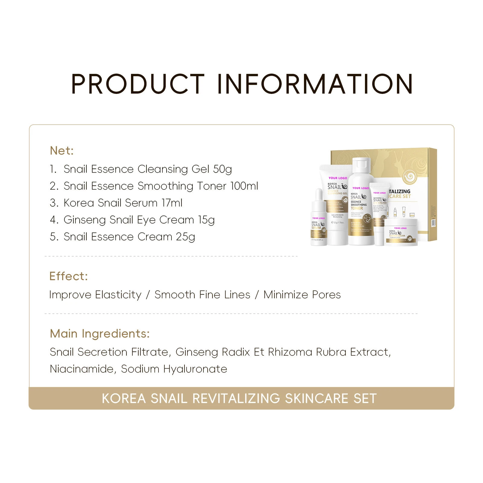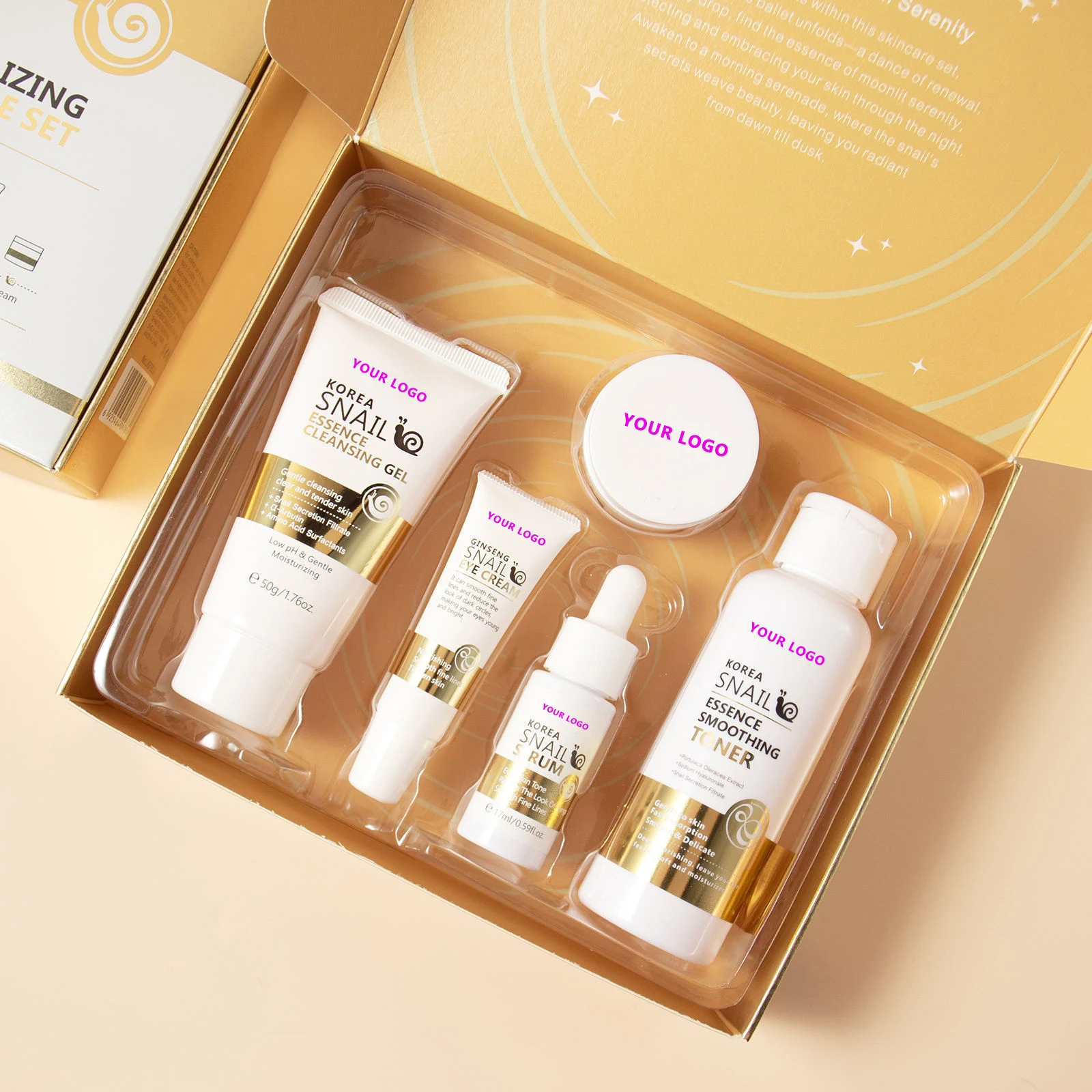 Sensitive Skin Care Set with Anti-Aging Facial Treatment Nighttime Routine Repair Snail & Ginseng Whitening Hydration for Face