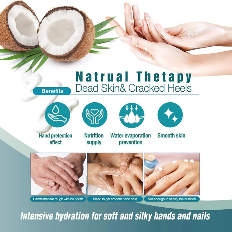 Organic Coconut Oil Milk Extract Hand Mask Gloves for Deep Hydration Night Repair Spa Treatment of Dry Cracked Skin