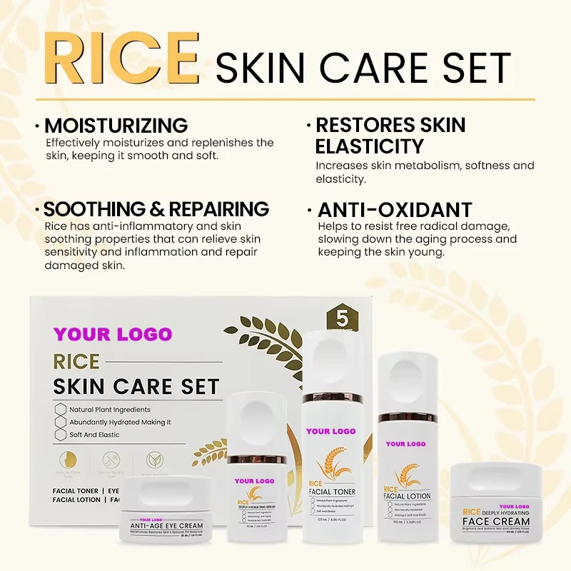 Hydrating & Brightening Skin Care Set with Squalane & Rice Extract Daily Glow Boosting Routine for All Skin Types