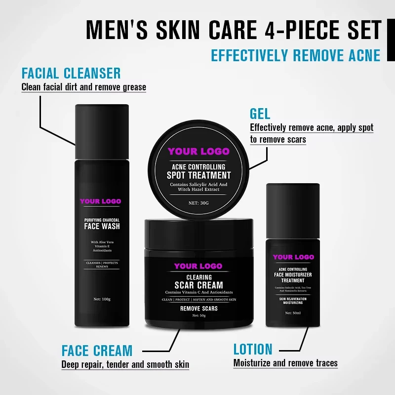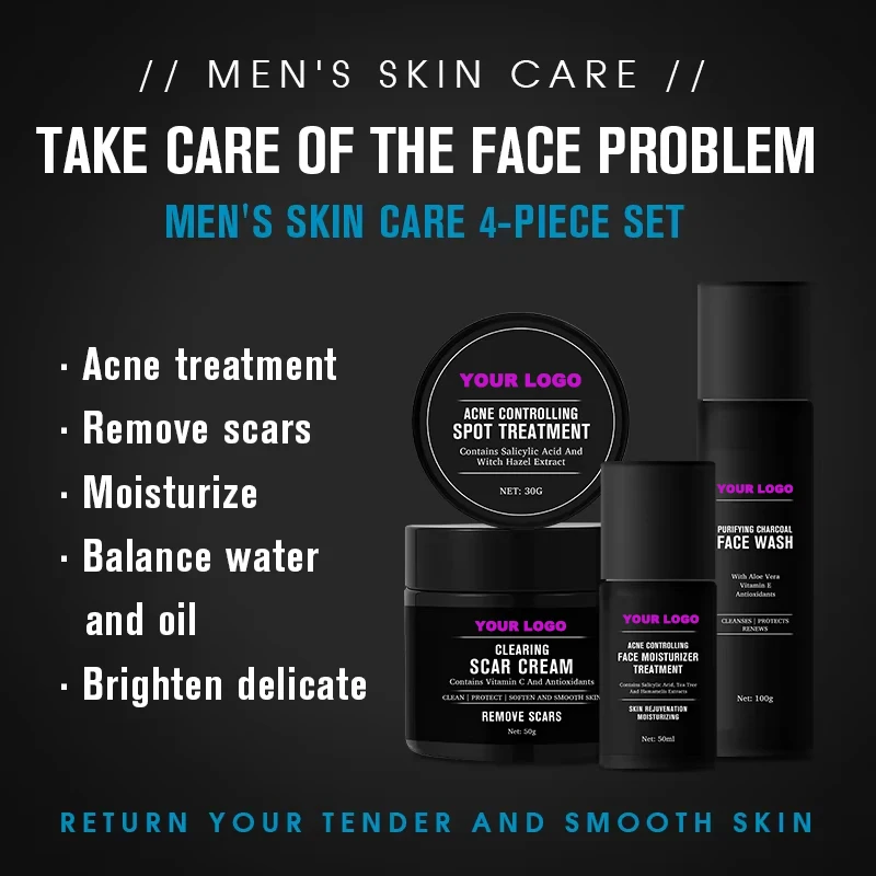 Exfoliating Men Skin Care Set Salicylic Acid & Tea Tree Extract for Soothing Blemish Control & Pore Refining Daily Use