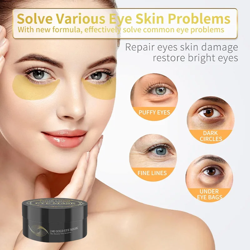 Luxury 24K Gold Collagen Ginseng & Anti-Wrinkle Eye Mask Premium Hydrogel Patches Instant Lifting Deep Hydration Effects