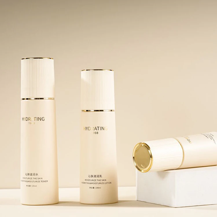 High Quality square Bottle Design with Gold Special Design Lid 20g 50g Jar 40ml 100ml 120ml Pump Bottle
