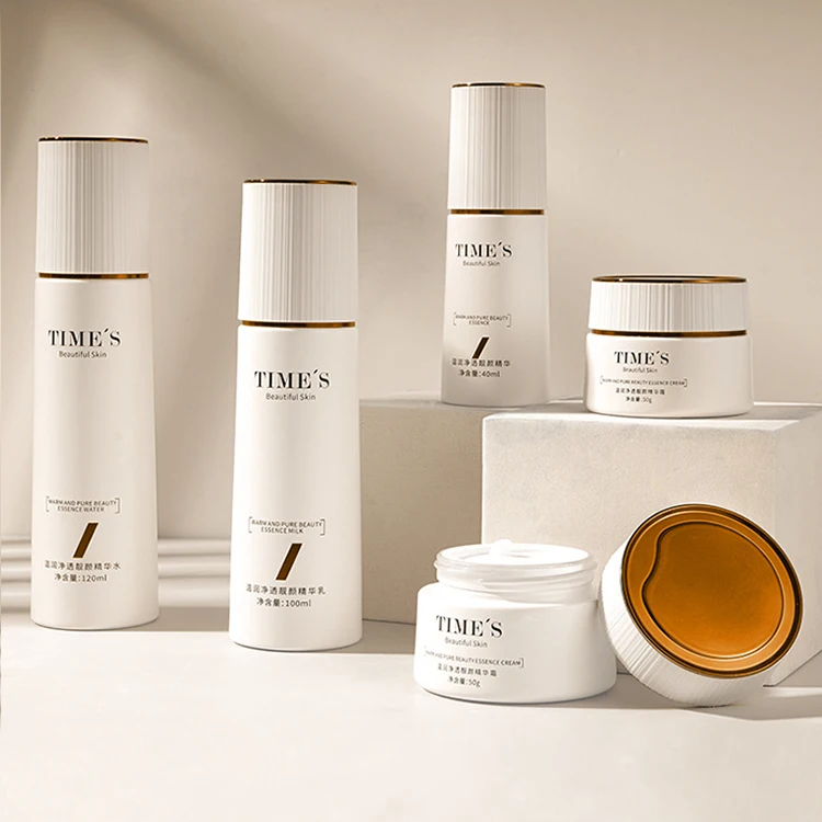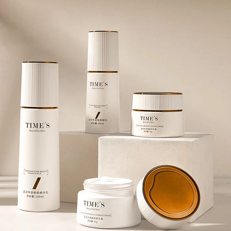White Stripes and Gold Lid with Luxurious White Set Glass Bottle Hot Stamping Gold LOGO Can Be Customized in Various Colors