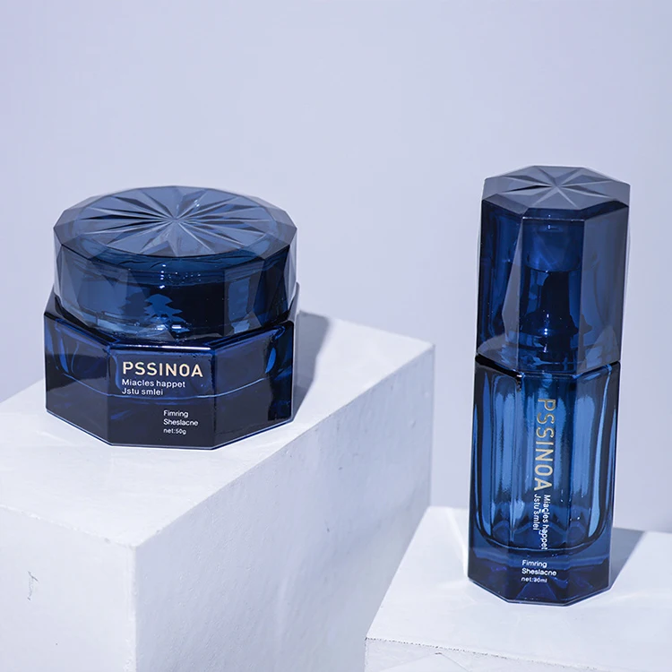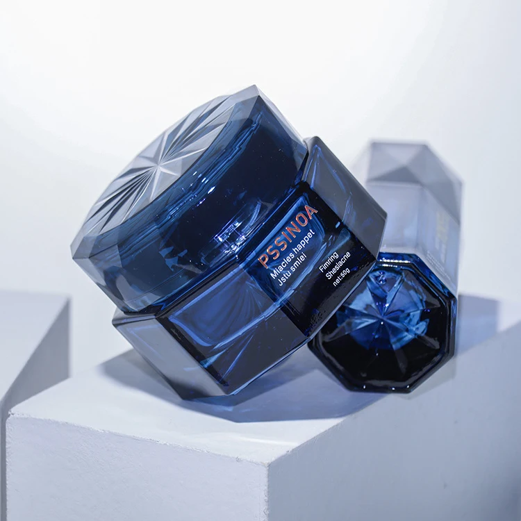 Elegant Polygonal Glass Bottle Design with High Quality Acrylic Lid for Luxury Cosmetic Packaging 1OZ 1.75OZ Jar and Bottle
