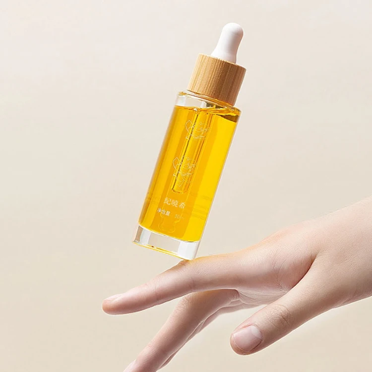 20ml Essential Oil clear Glass Dropper Bottle with Bamboo Cap Custom Bamboo Ring Dropper Bottle