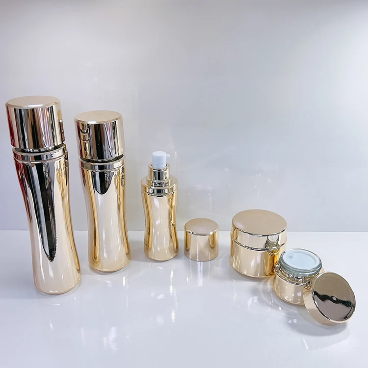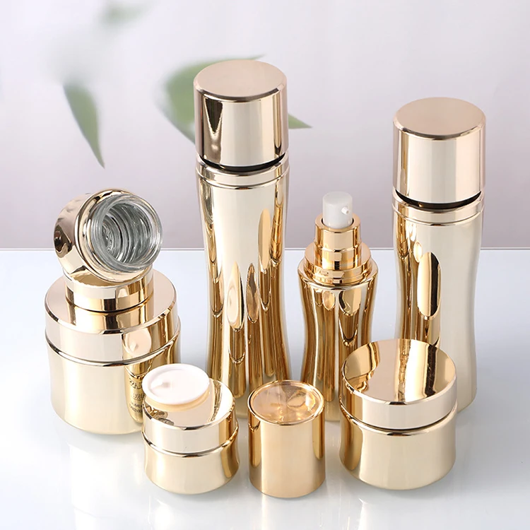 Luxury Custom Electroplated Lotion Bottle Women Waist Cosmetic Glass Bottle 120ml Pump Bottle 20g 30g 50g 100g Glass Cream Jar