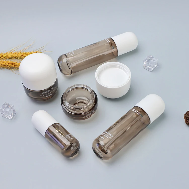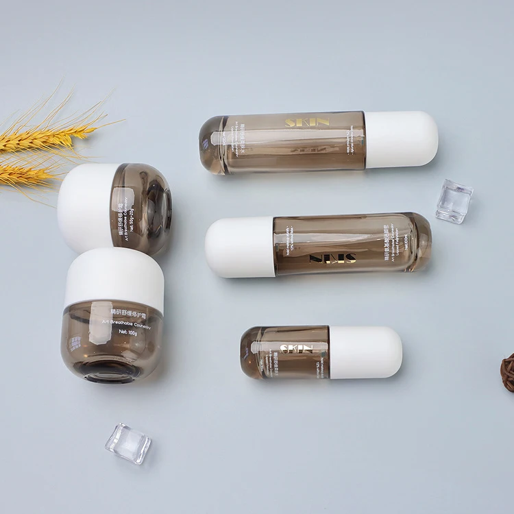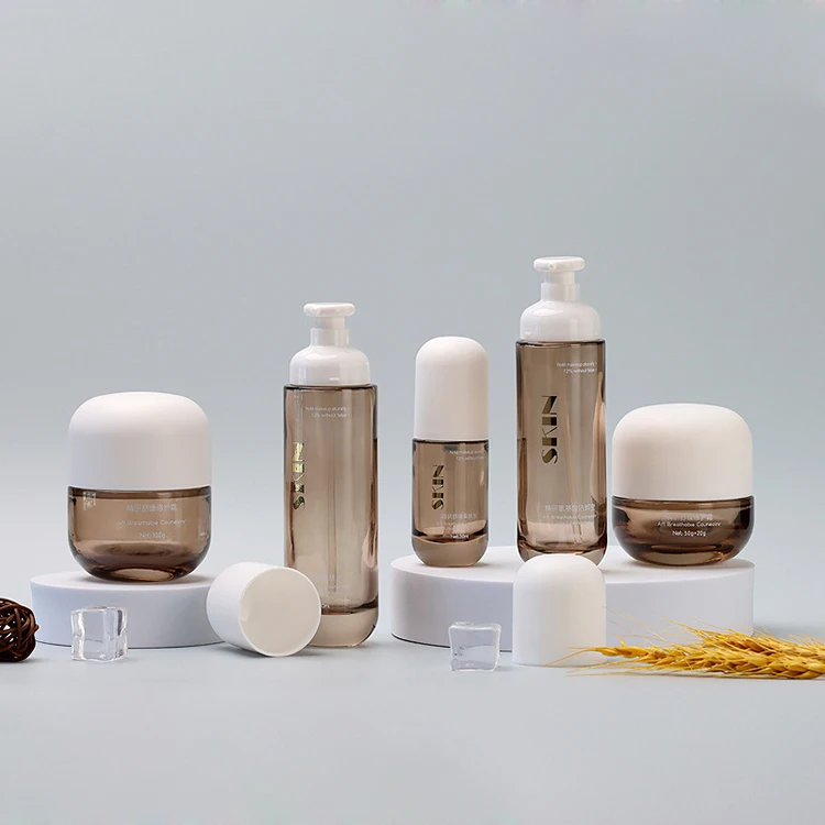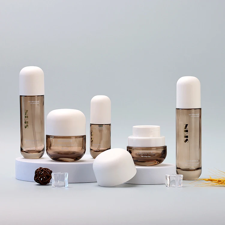 2026 New Arc Lid Combination Jar the Most Fashionable Design Amber Transparent Bottle White Matte Lid