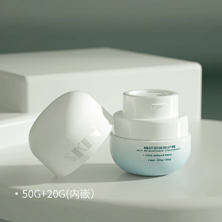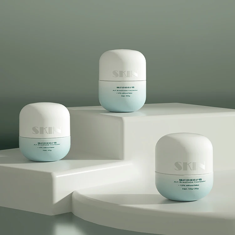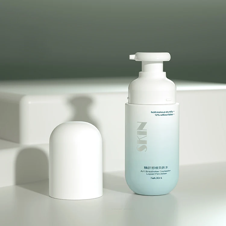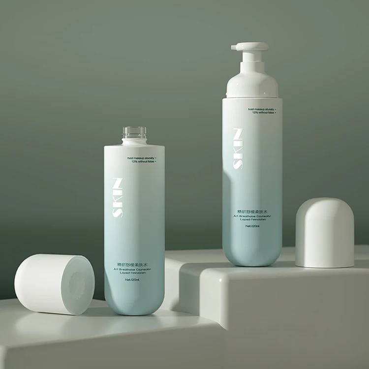 The Bottle with Matt Blue Gradient Matches the Matt White Arc-shaped Cap with Unique Pump Design and Double-layer Jar Design