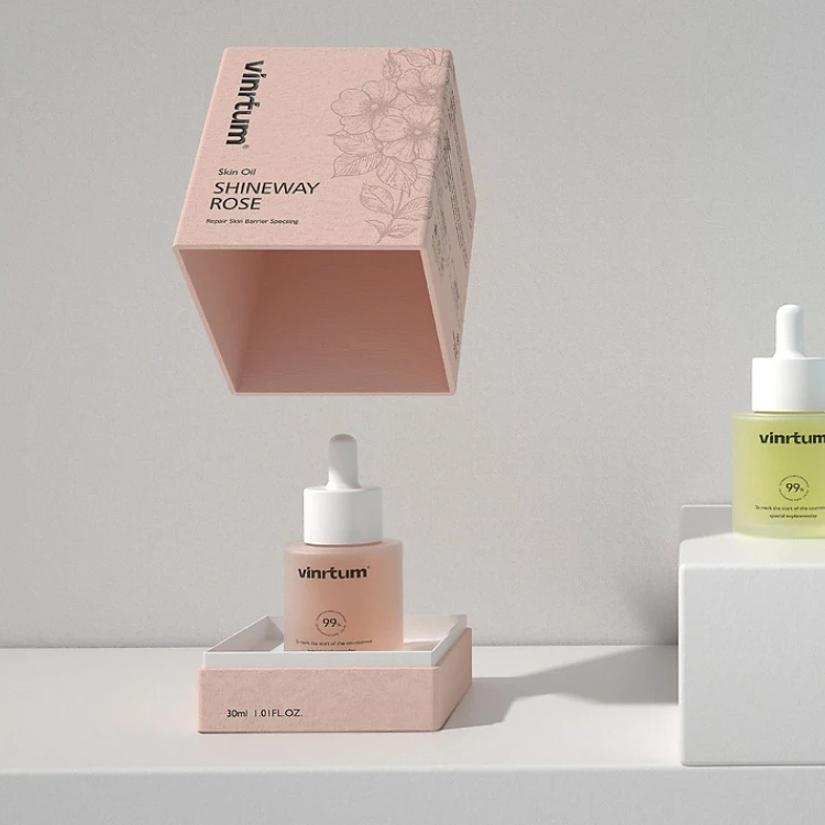 30ml round Cosmetic Glass Dropper Bottle for Eye Drops Luxury Square Hard Paper Box for Serum Oils