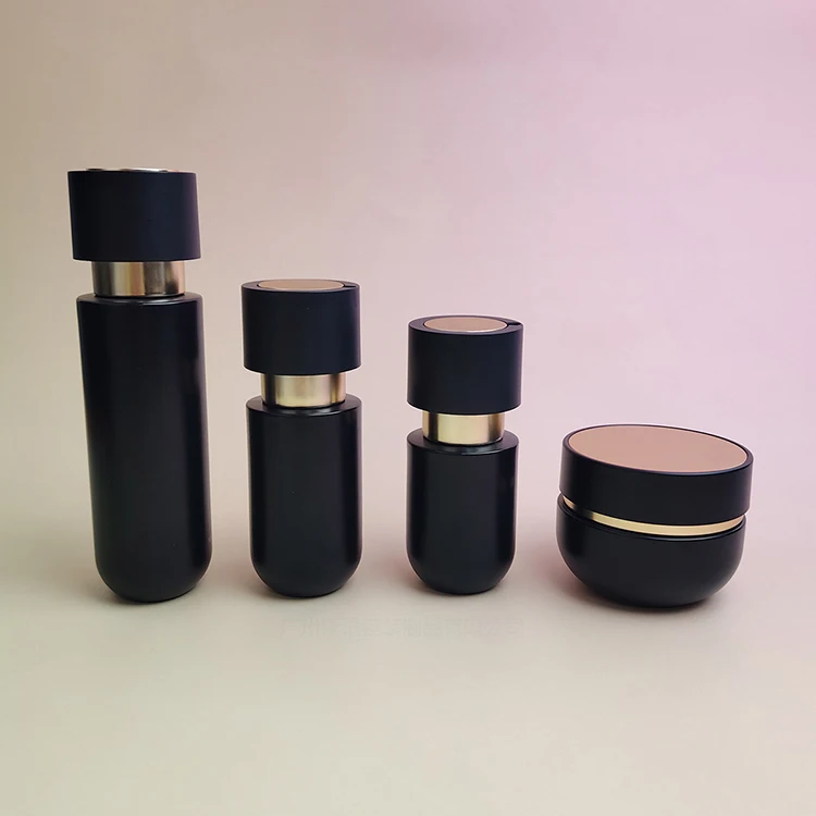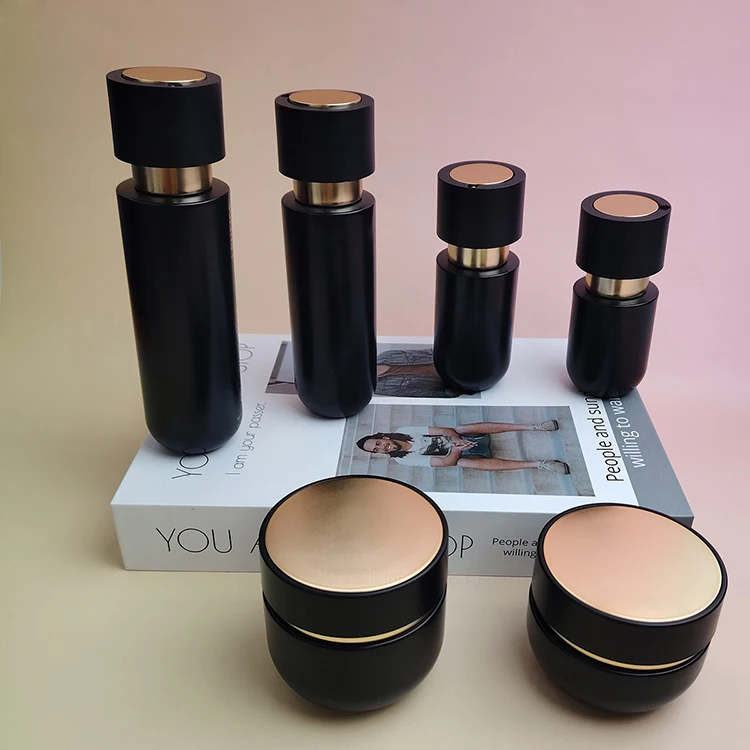 Black Gradient square 20g 50g Glass Jar and Black and Matt Gold Lid Glass Packaging Set 40ml 100ml 120ml