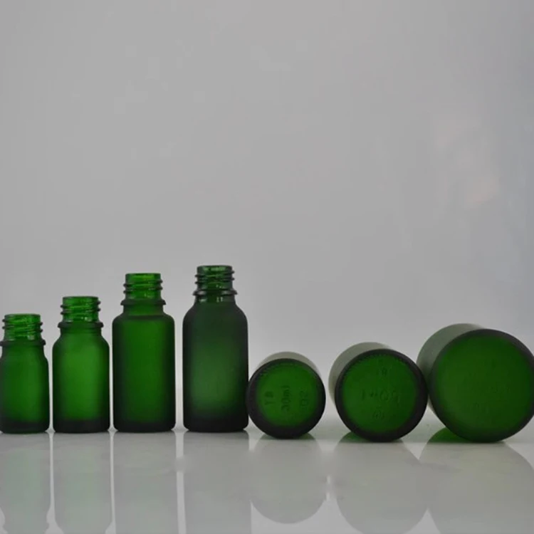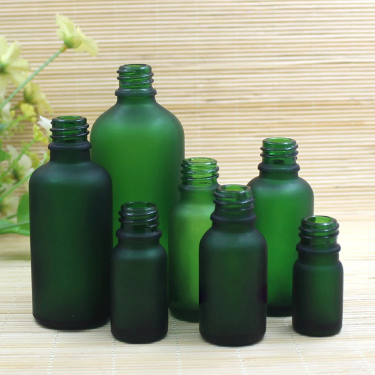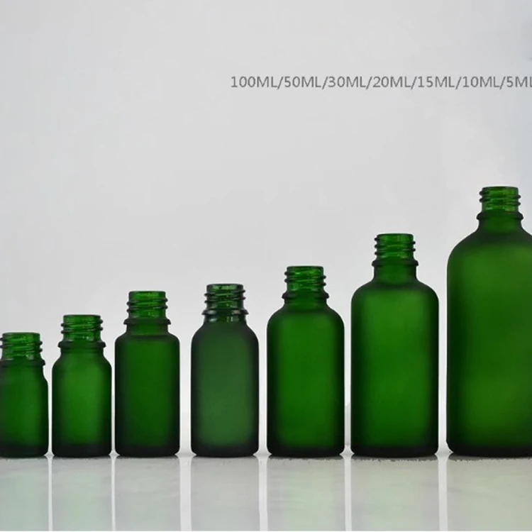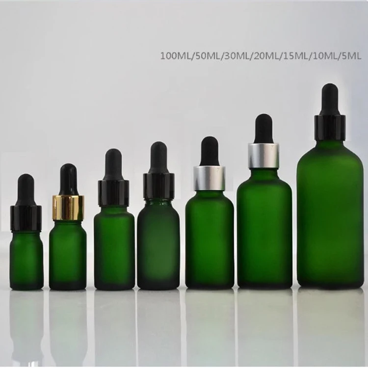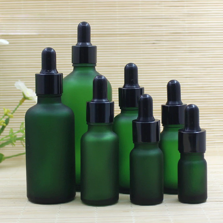 Luxury Face Serum Dropper Bottle 15ml 20ml 1oz 50ml Frosted Green Glass with Black Cap for Oil Screen Printing Surface Handled
