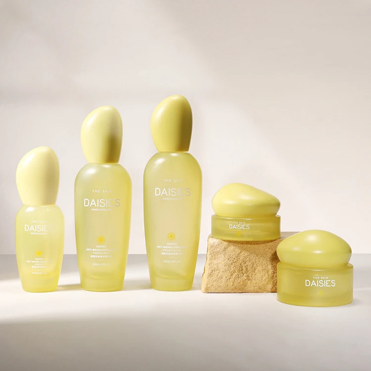 Unique Empty 30g/50g Cosmetic Cream Jar Set Pump Sprayer 40ml/100ml/120ml Skin Care Lotion Glass Bottles Yellow Set Eye Cream
