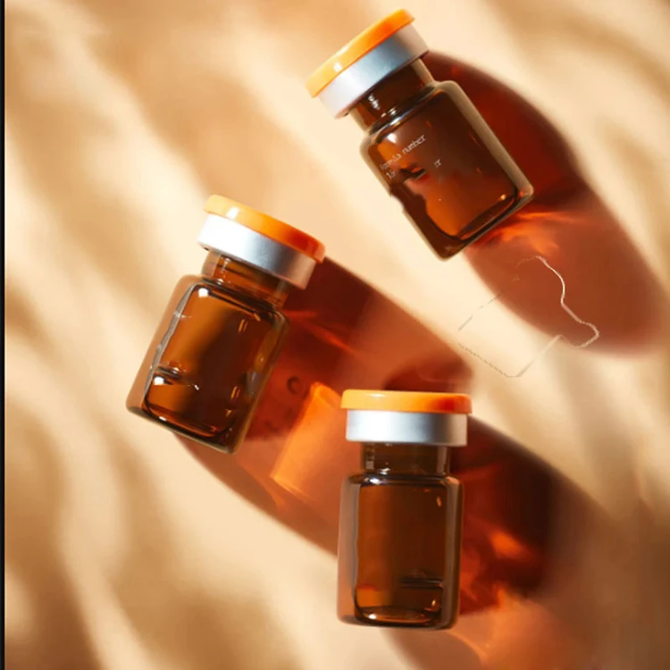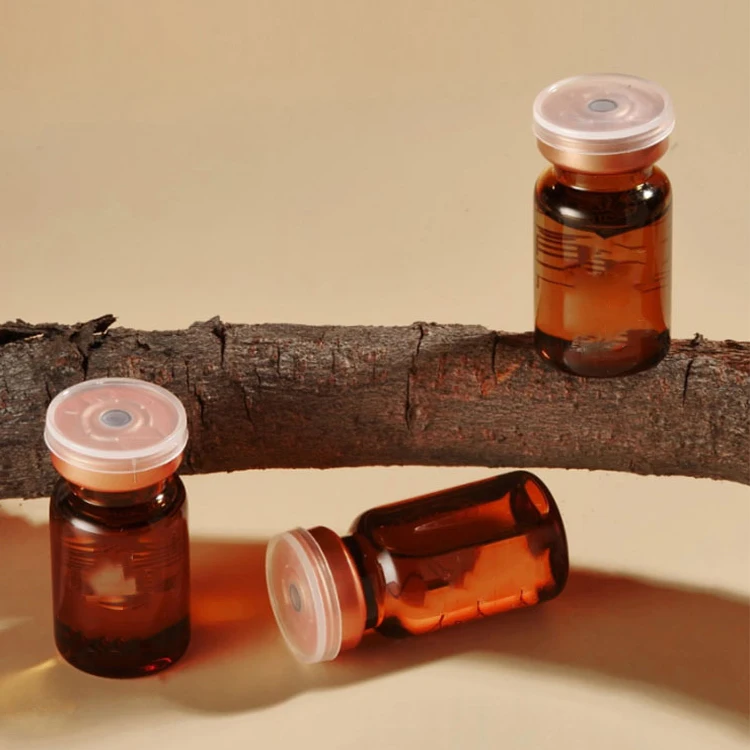 Cosmetic Injection Glass Vials Flat Amber Tube with Cork Aluminum Plastic Caps for Skin Care Serum and Eye Drops