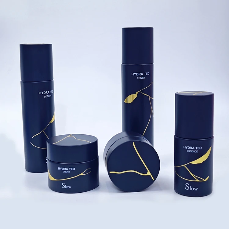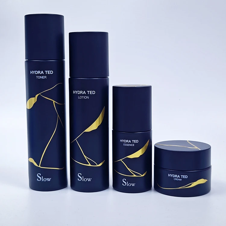 A Brand New Design for Premium Glass Cosmetic Packaging Featuring a Gold Stone-textured 30g Glass Jar and a 30ml Pump Bottle.