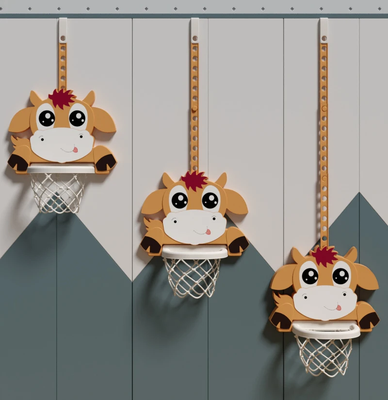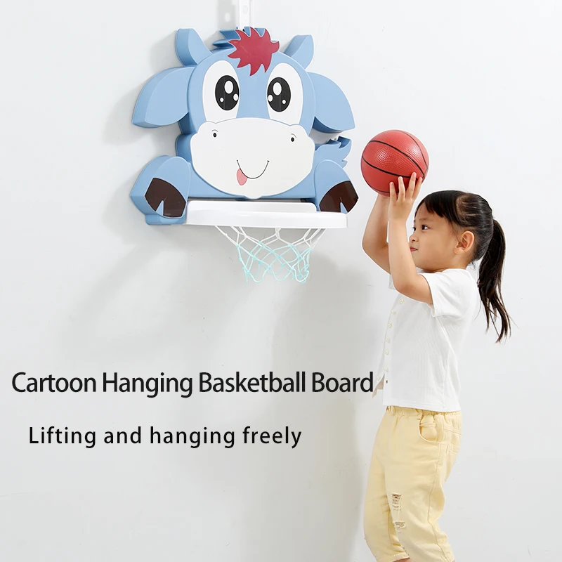 Cow Cartoon Design Kids Indoor Portable Hanging Basketball Hoop Basketball Training Equipment