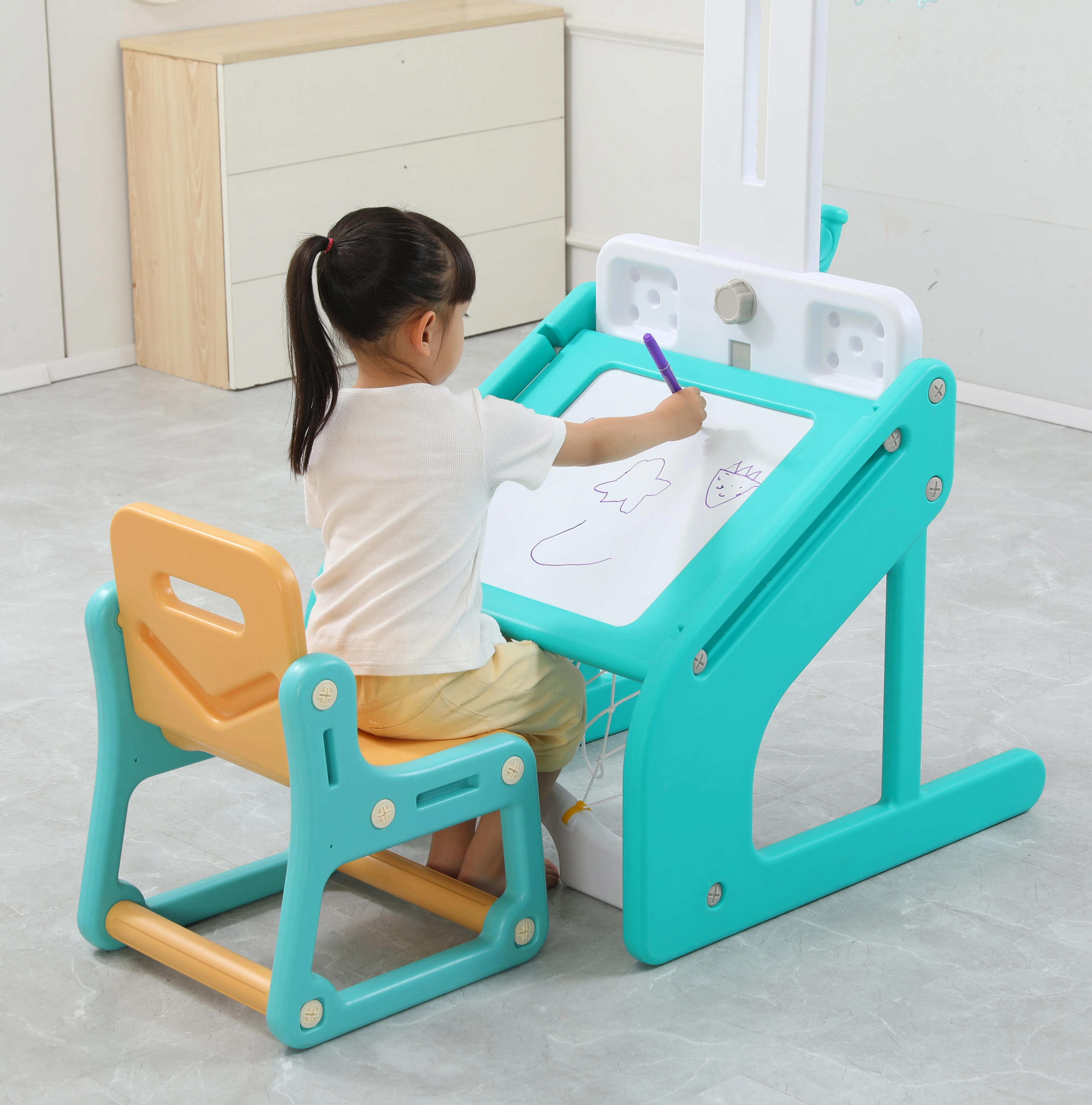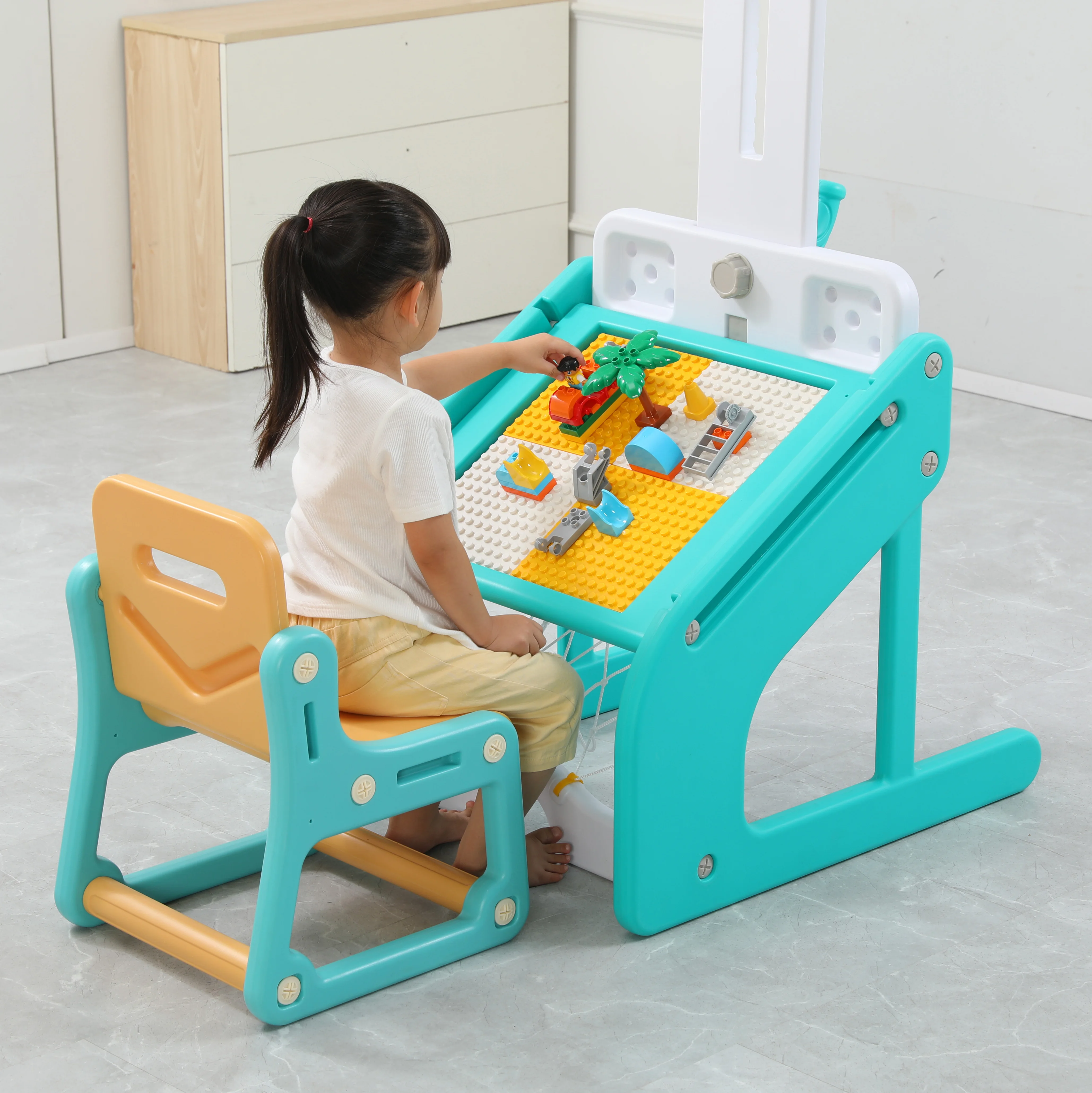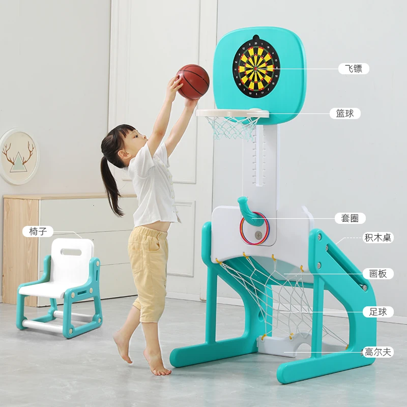 7 in 1 Functions Kids Lifting Multifunction Plastic Movable Basketball Stand with Blocks and Drawing Board for Sales