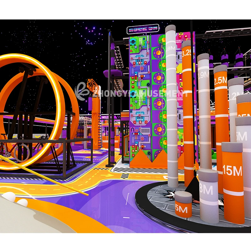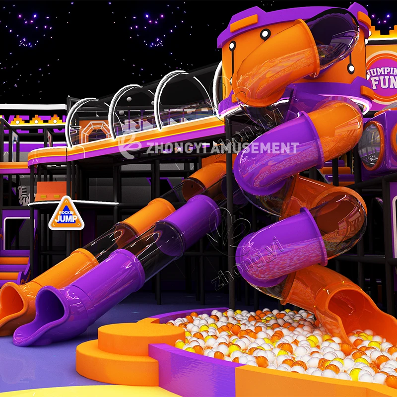 High Quality Customization Fiberglass Neon Lights Kids Soft Play Space Theme Indoor Playground Big Slides School Home Commercial