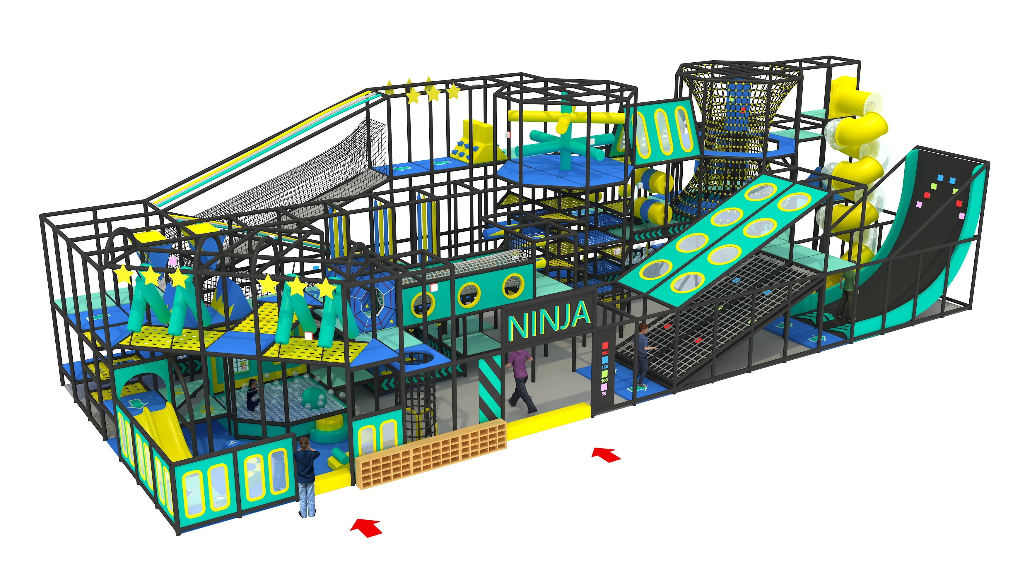 2022 New Design Trampoline Park with Ninja Equipment for Children and Adults.