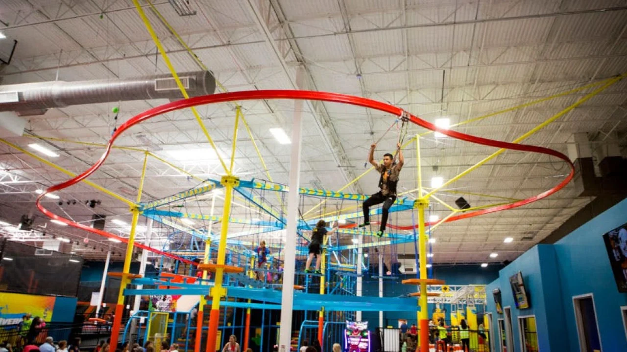 Commercial Indoor Sky Rider Zip Line Roller Coaster for Trampoline Park