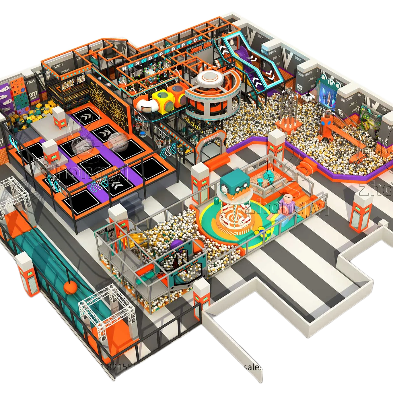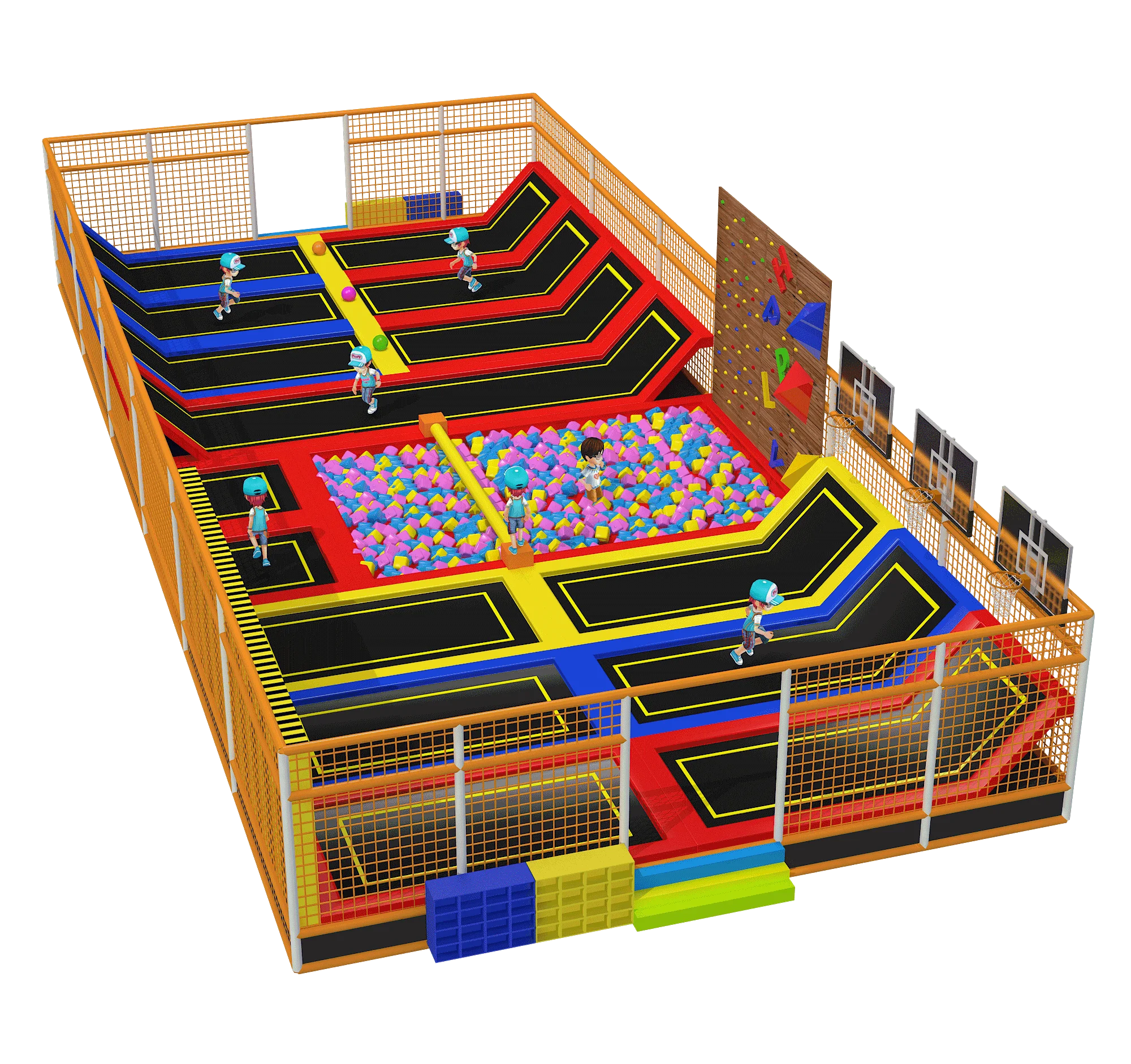 Jumping Playground Exercise Trampoline Park with Basketball Slam Dunk Sticky Wall