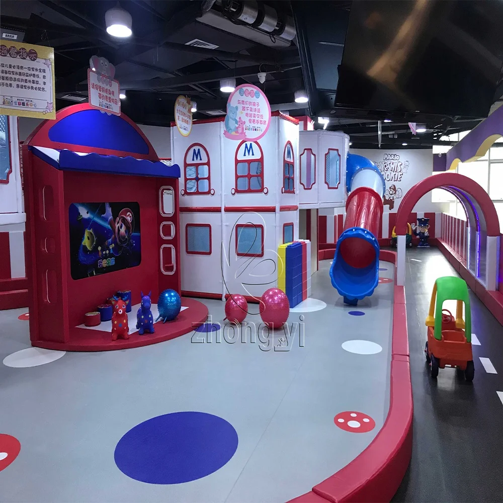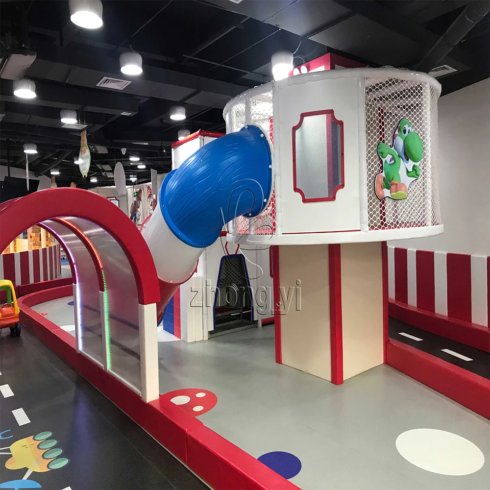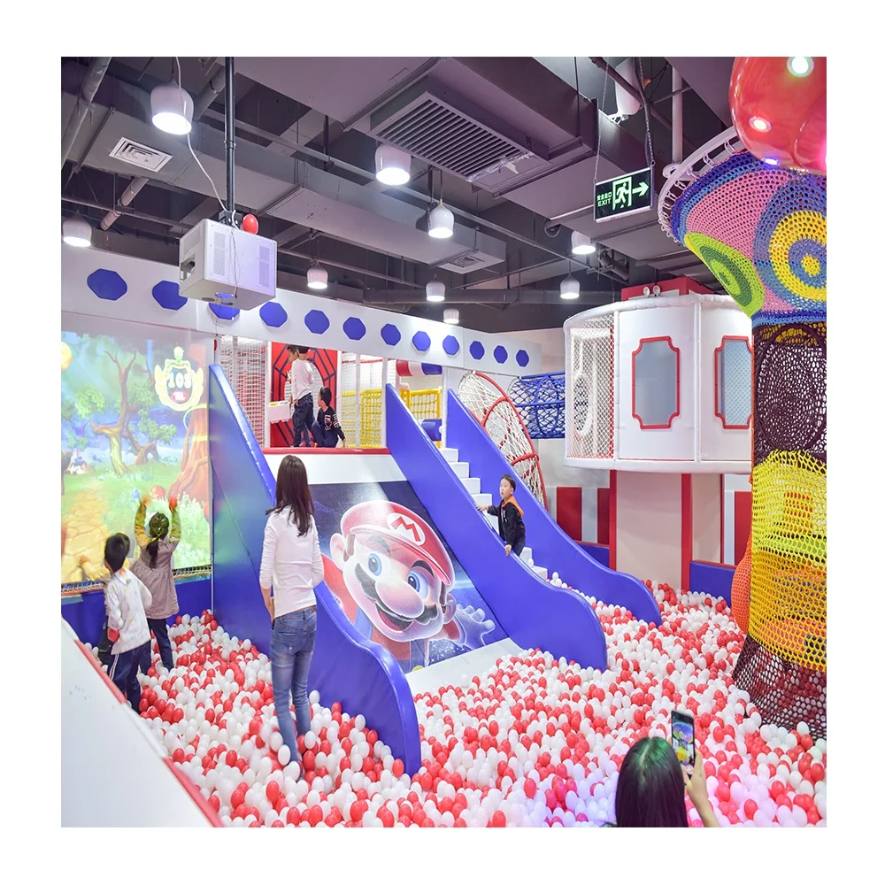 Commercial Indoor Playground Equipment Mario-Themed City Park Slide Jumping Rainbow Ball Blaster for Schools Shopping Nylon