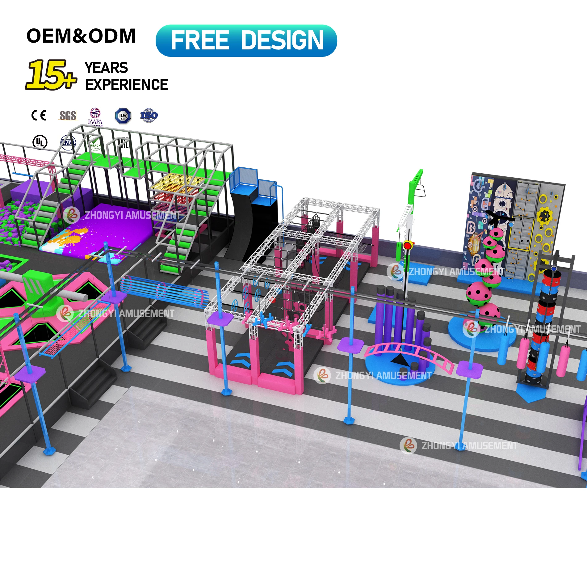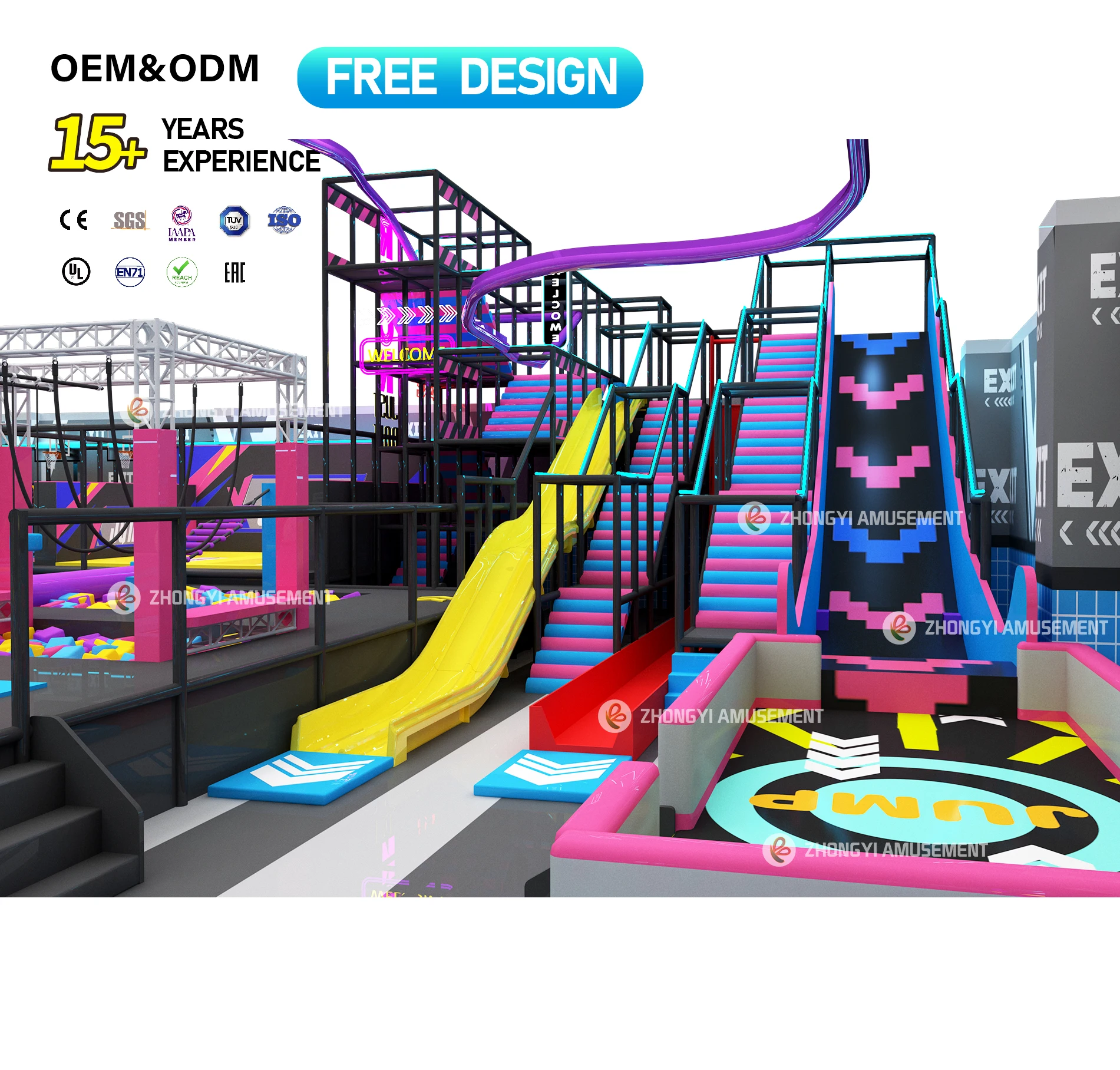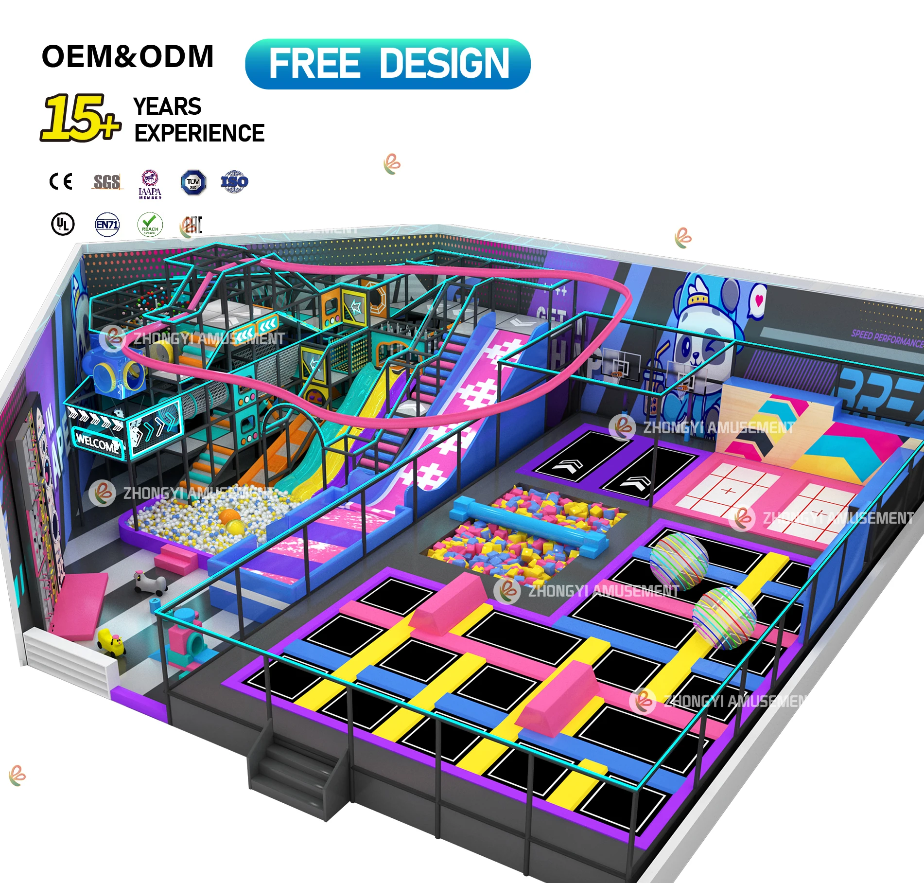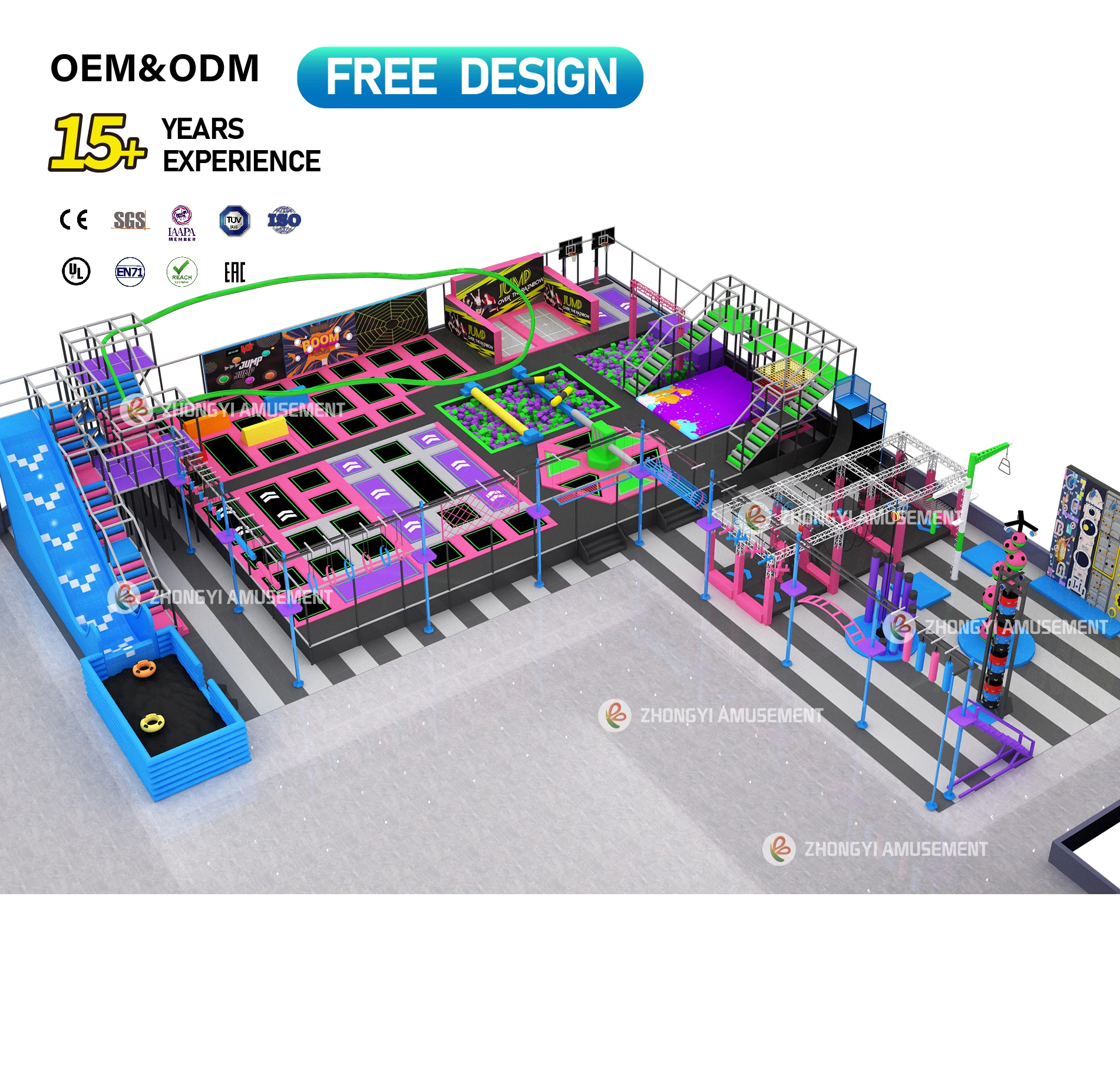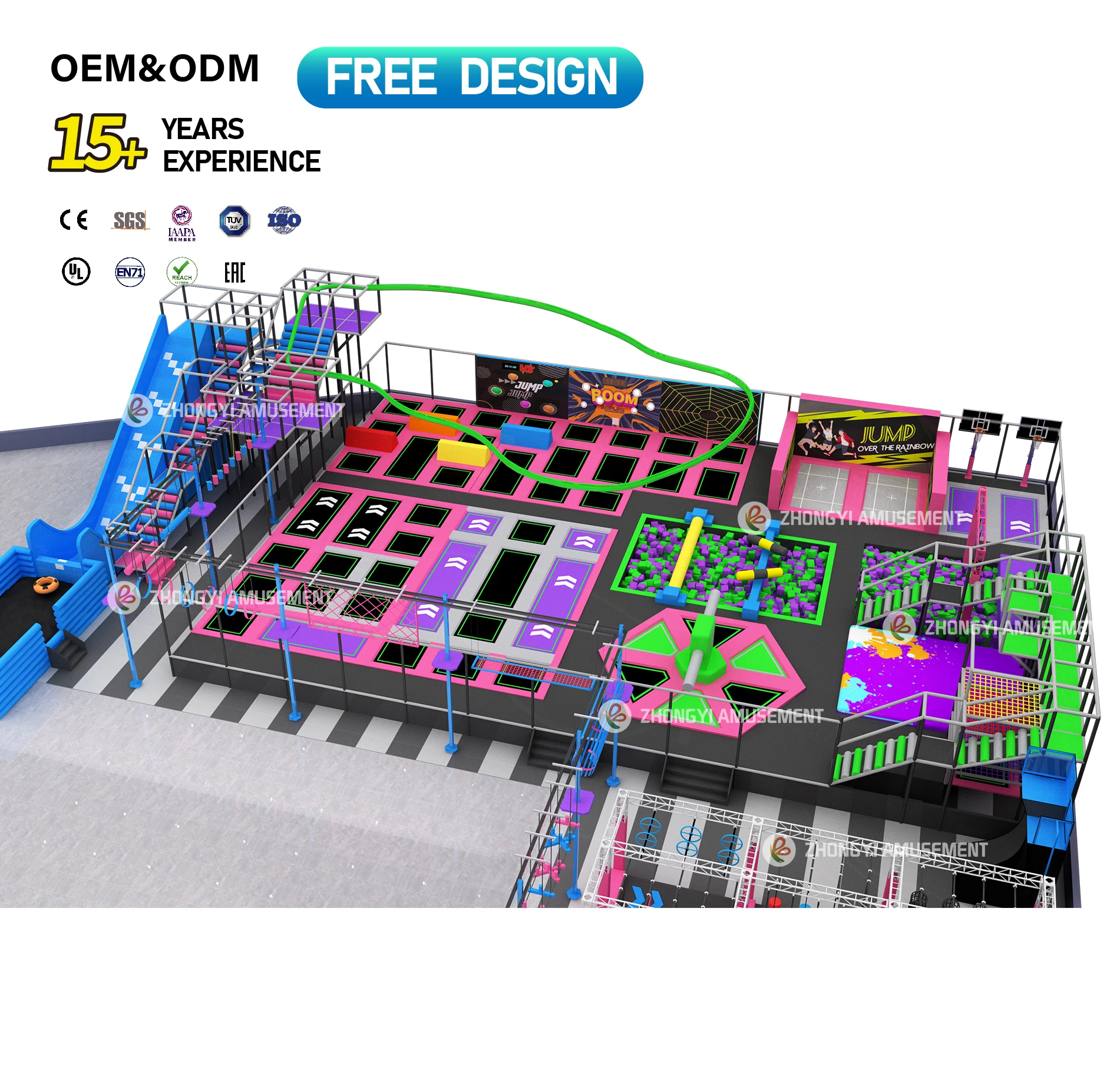 Custom Commercial Kids Adults Trampoline Equipment Interactive Games Large Slides Indoor Trampoline Park