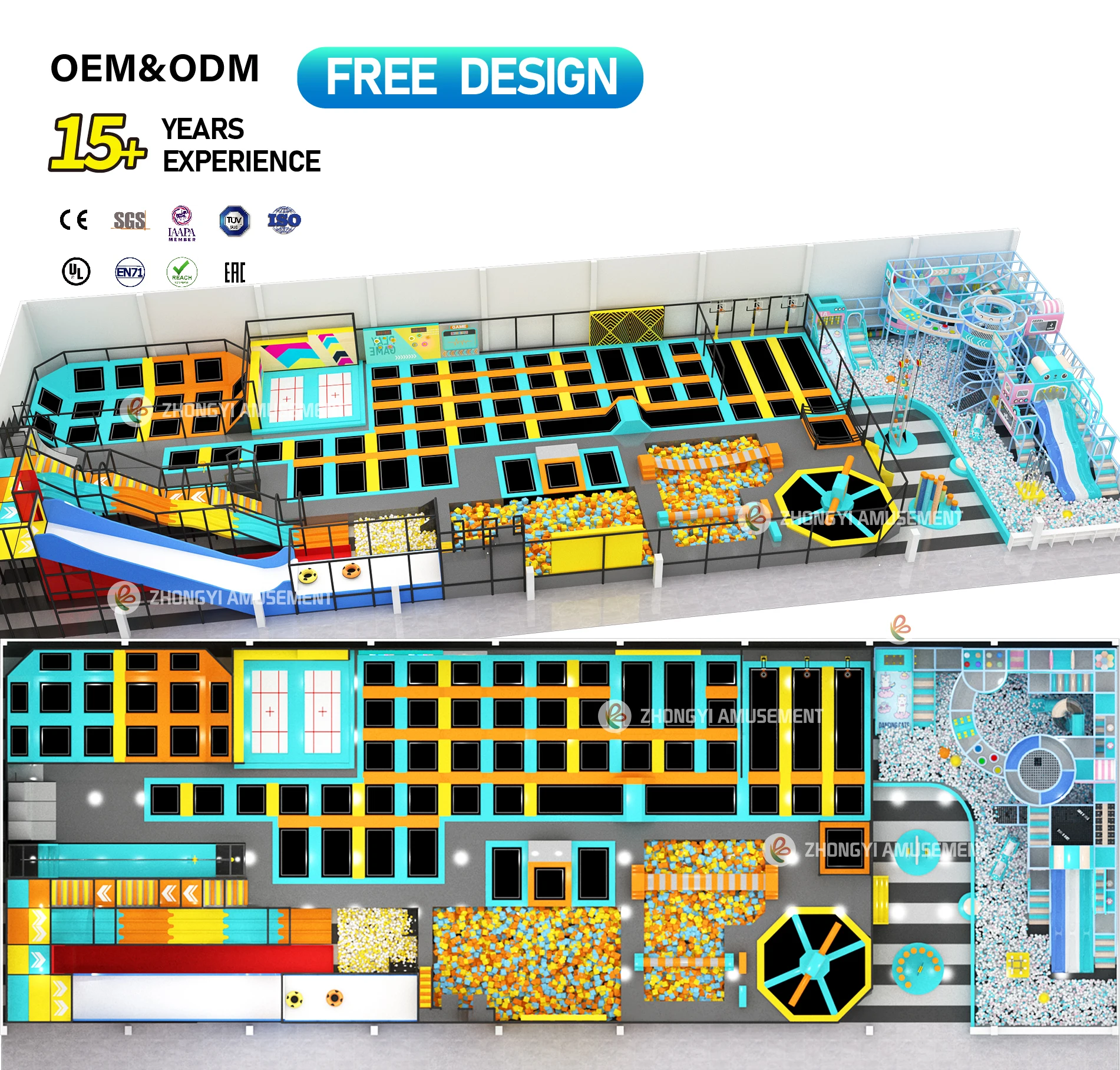 1000㎡ Kids and Adults Jumping Zone with Spider Wall Foam Pit Trampoline Area Indoor Trampoline Park Equipment