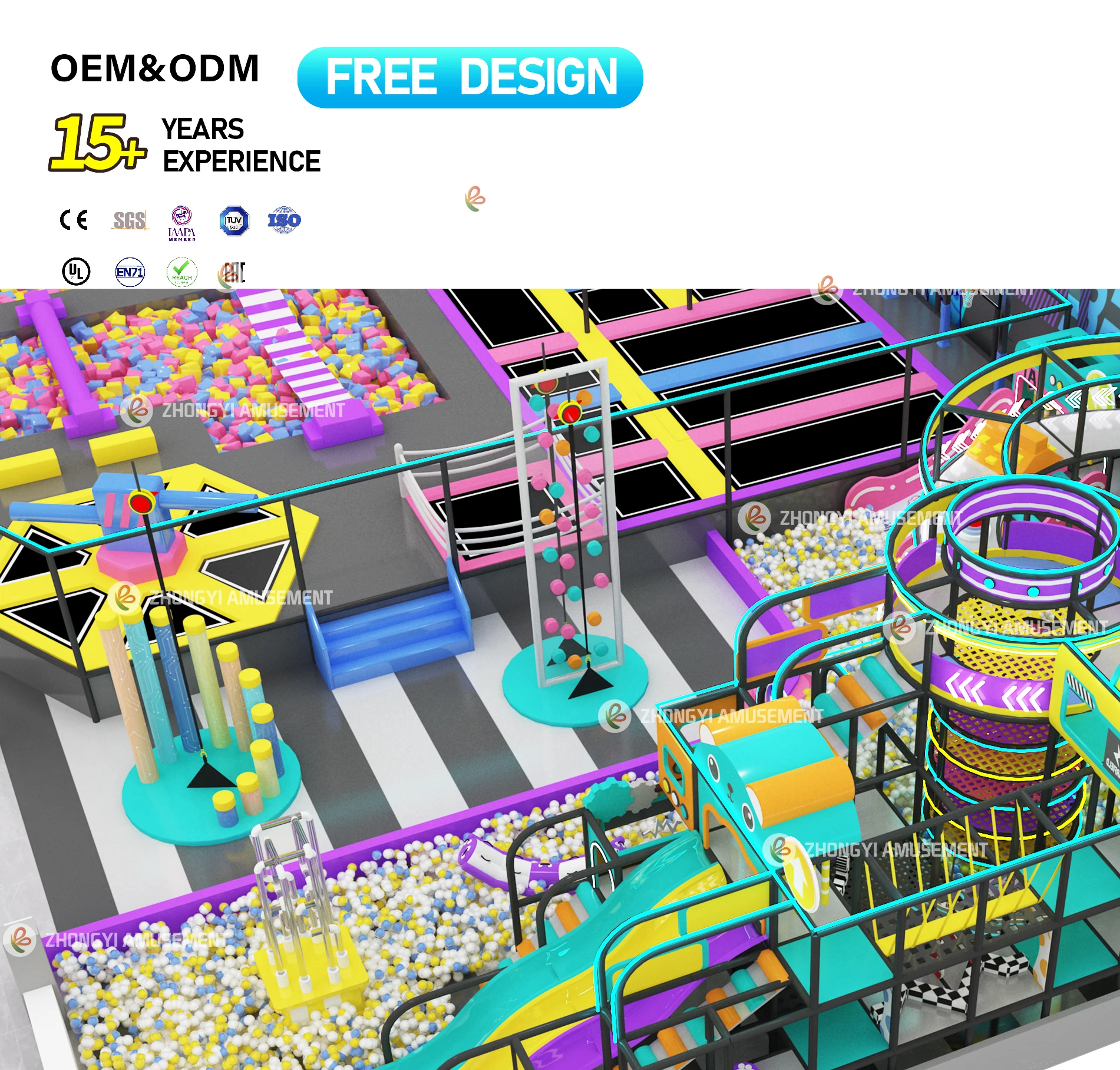 Commercial Children Jumping Park Customized High Elastic Amusement Park Indoor Playground with Ninja Warrior Trampoline Park