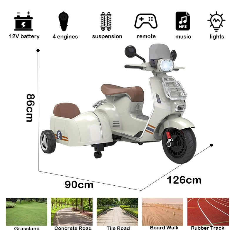Children's Electric 12v Tricycle Motorcycle Baby Kids Toy Can Sit Double-drive Large Motorbike Bar Motorcycle