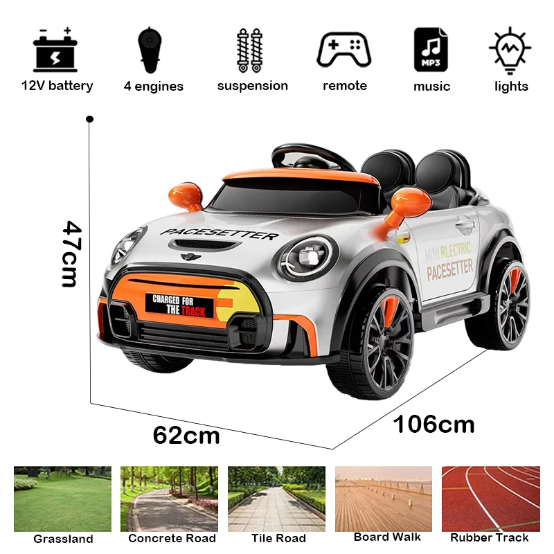 High Quality Children 2 Seat 12v Electric Cars Kids Ride on Car with Led Light for 4-8 Years Old Girls
