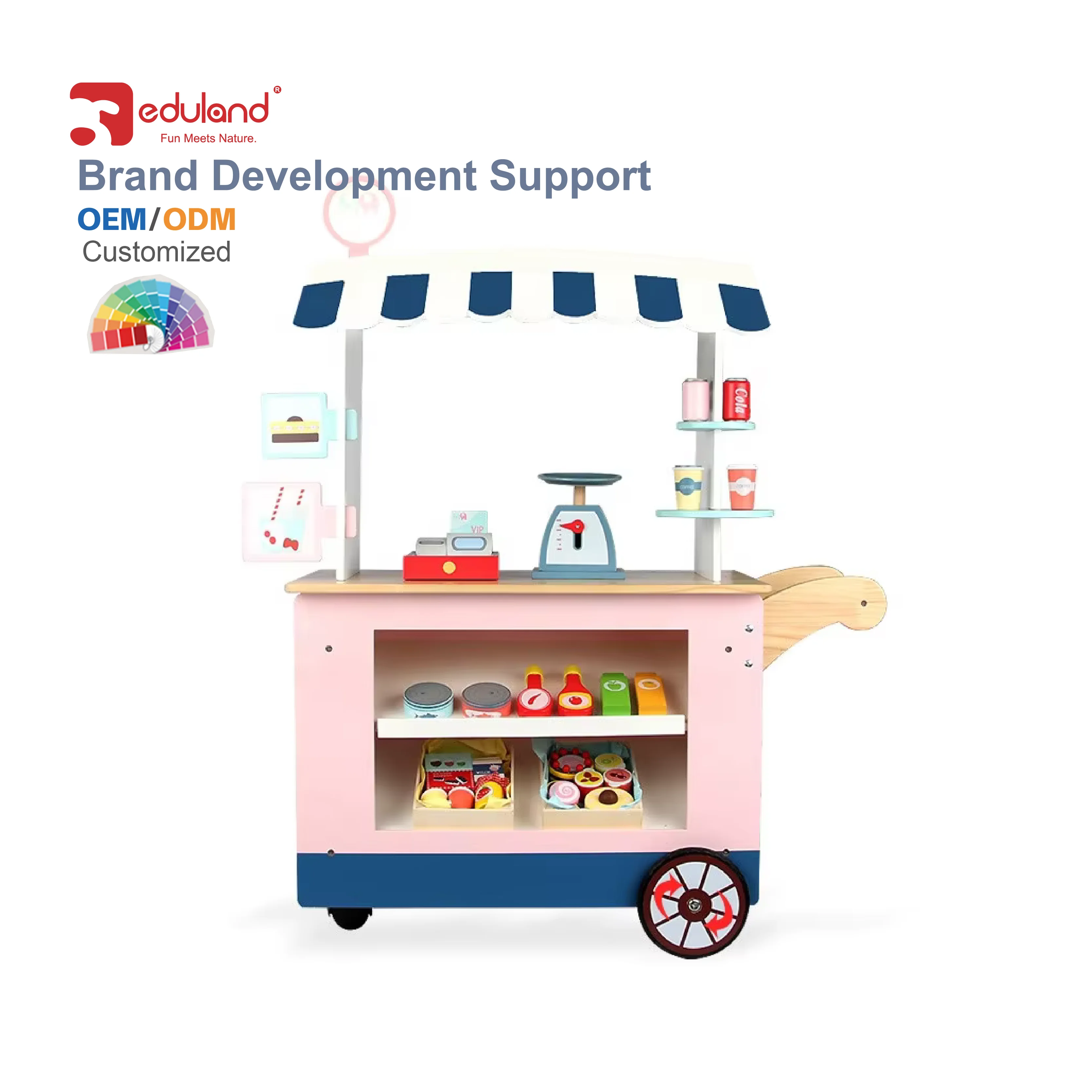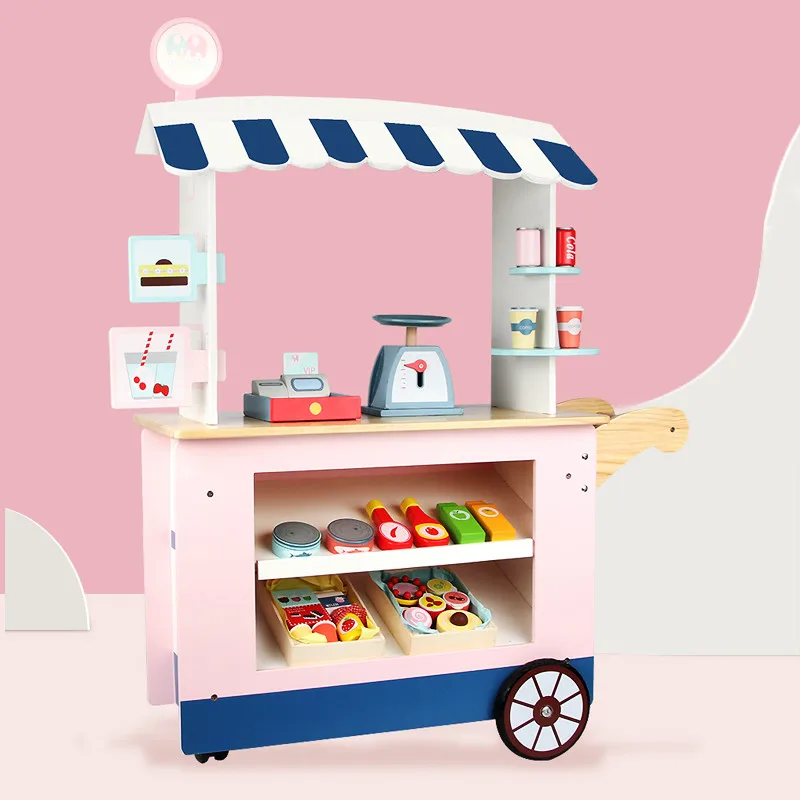 Pretend Role Play pink Wooden Dessert Shop Wooden Supermarket Toy Set
