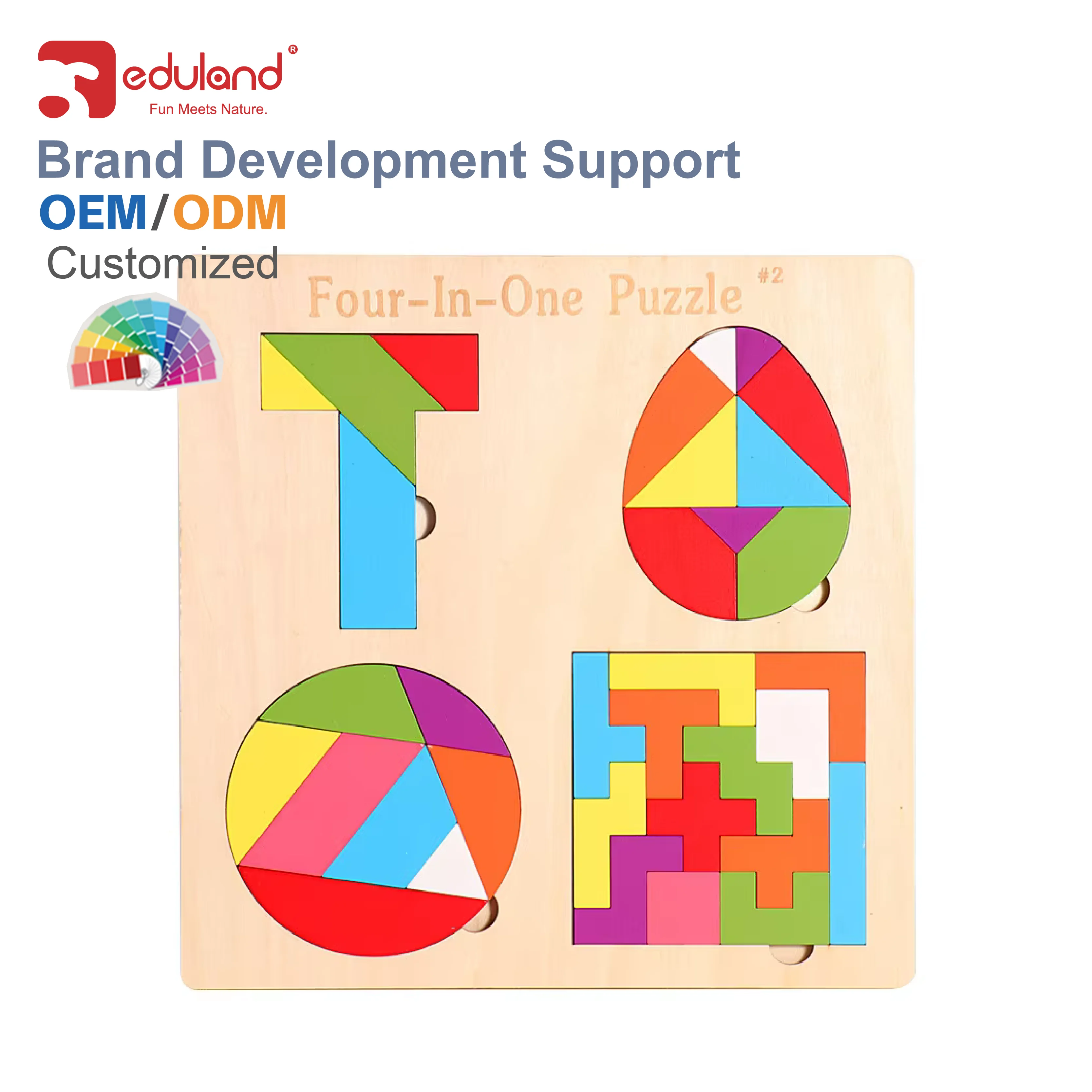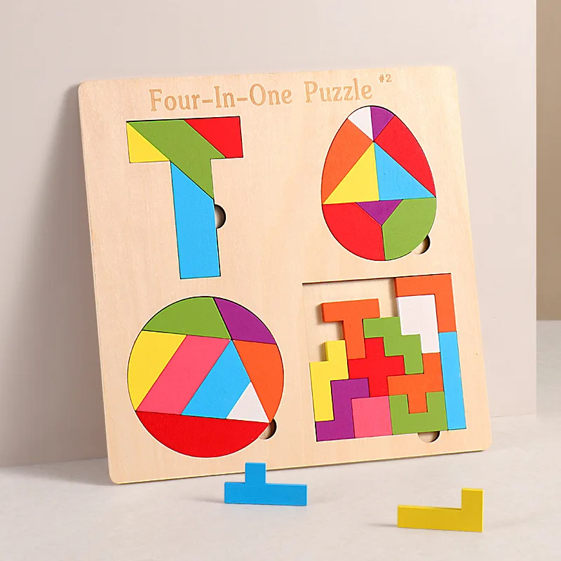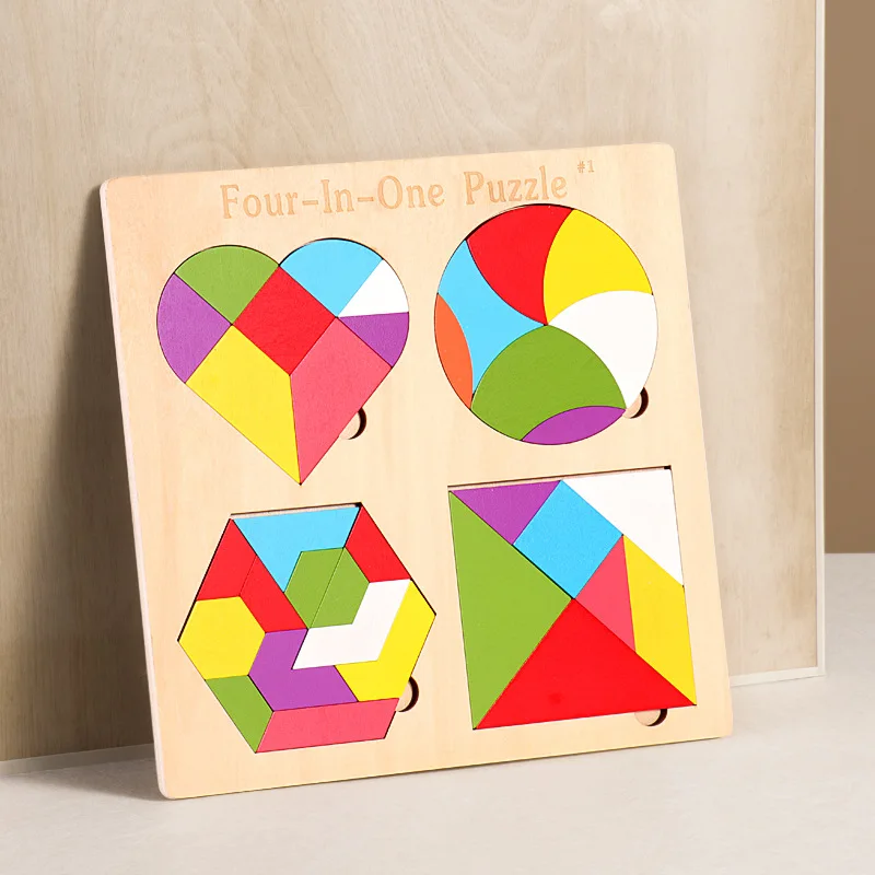 Wholesale Wooden Tangram Four - in - One Puzzle Toys Children Brain Training Wooden Toys