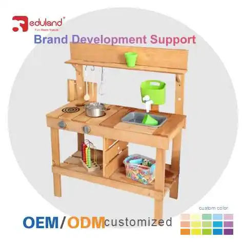 Kids Durable Wooden Outdoor Play Mud Kitchen With Running Water