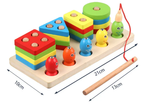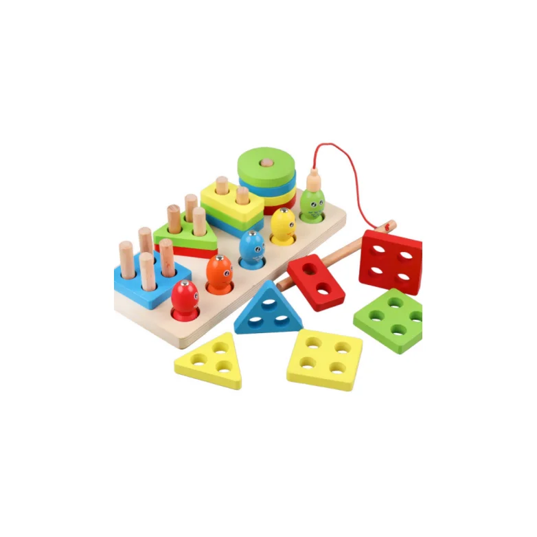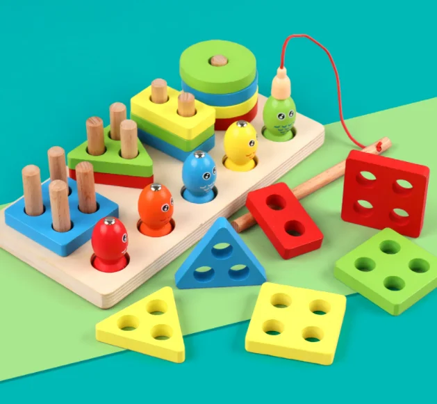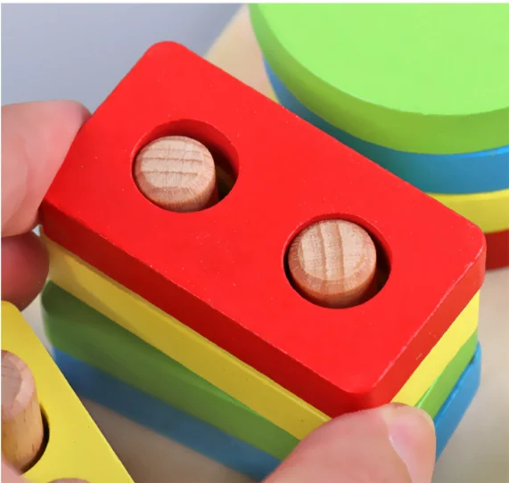 Summer Unisex Children's Educational Toy Wooden Stacking Rings Geometric Matching Block Set