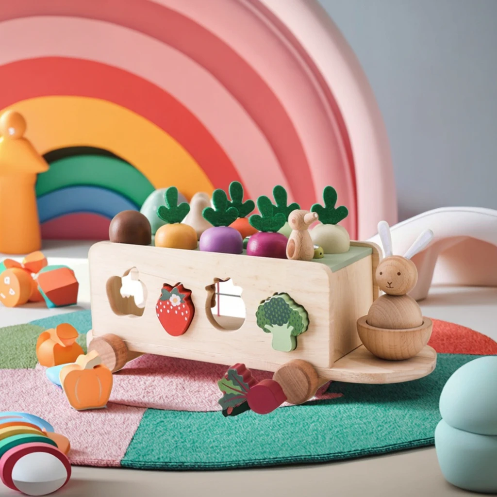 Hot New Children's Educational Smart Car Toy Interesting Wooden Pull Line Farm-Inspired Radish Insect for Baby's Shape Matching