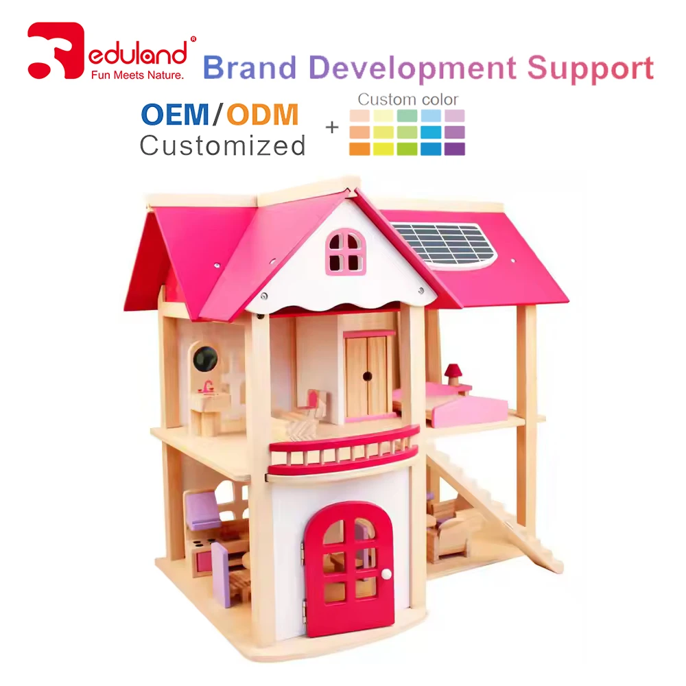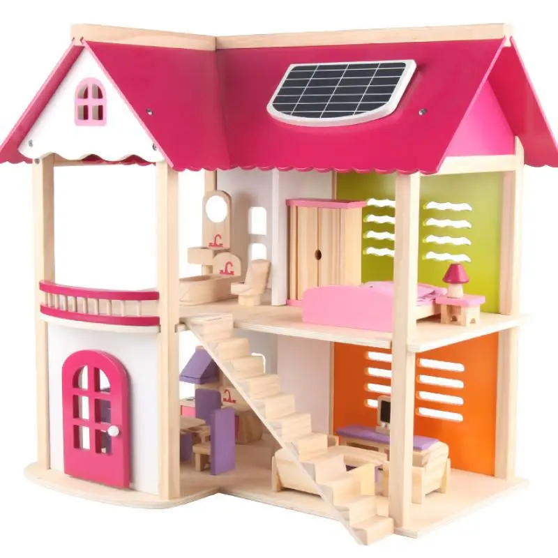 Kids DIY Toy Wooden Doll House with Room Furniture Pretend Villa for Children