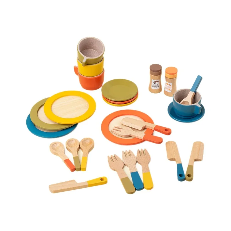 Children's Safe Wooden Simulation Early Education Playhouse Educational Kitchen Food Toys Including Cake Teapot Pastry for
