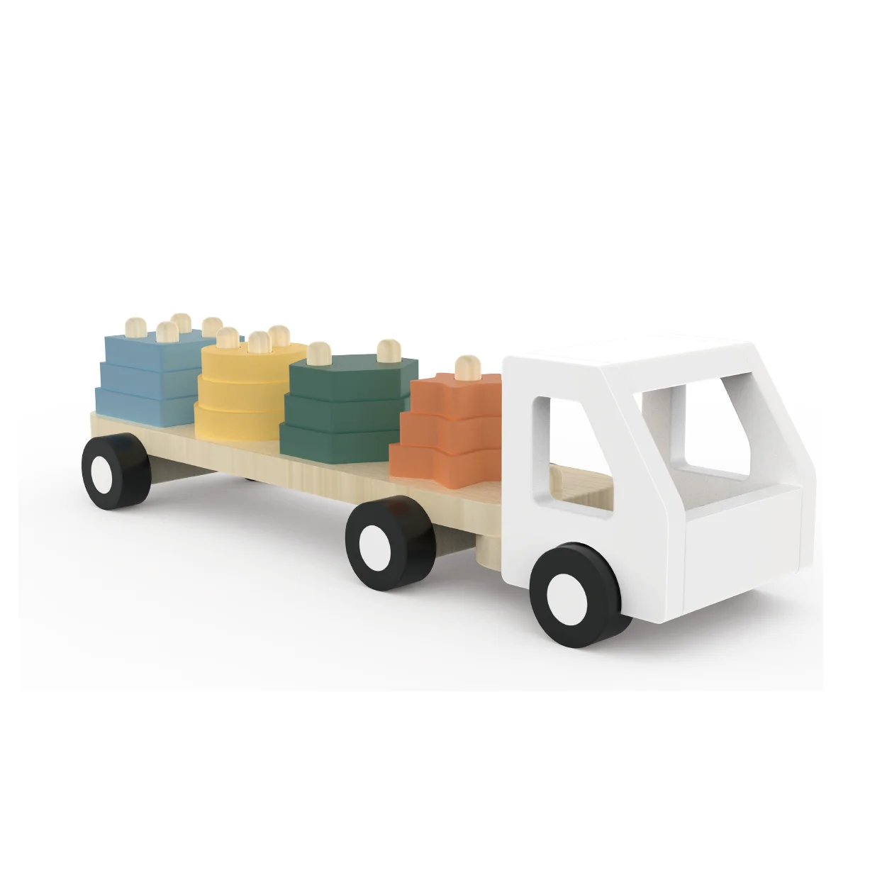Unisex Montessori Educational Sorter Ring Truck Nontoxic Wooden Preschool Car Toys for 18M+ Children Fun Pretend Play
