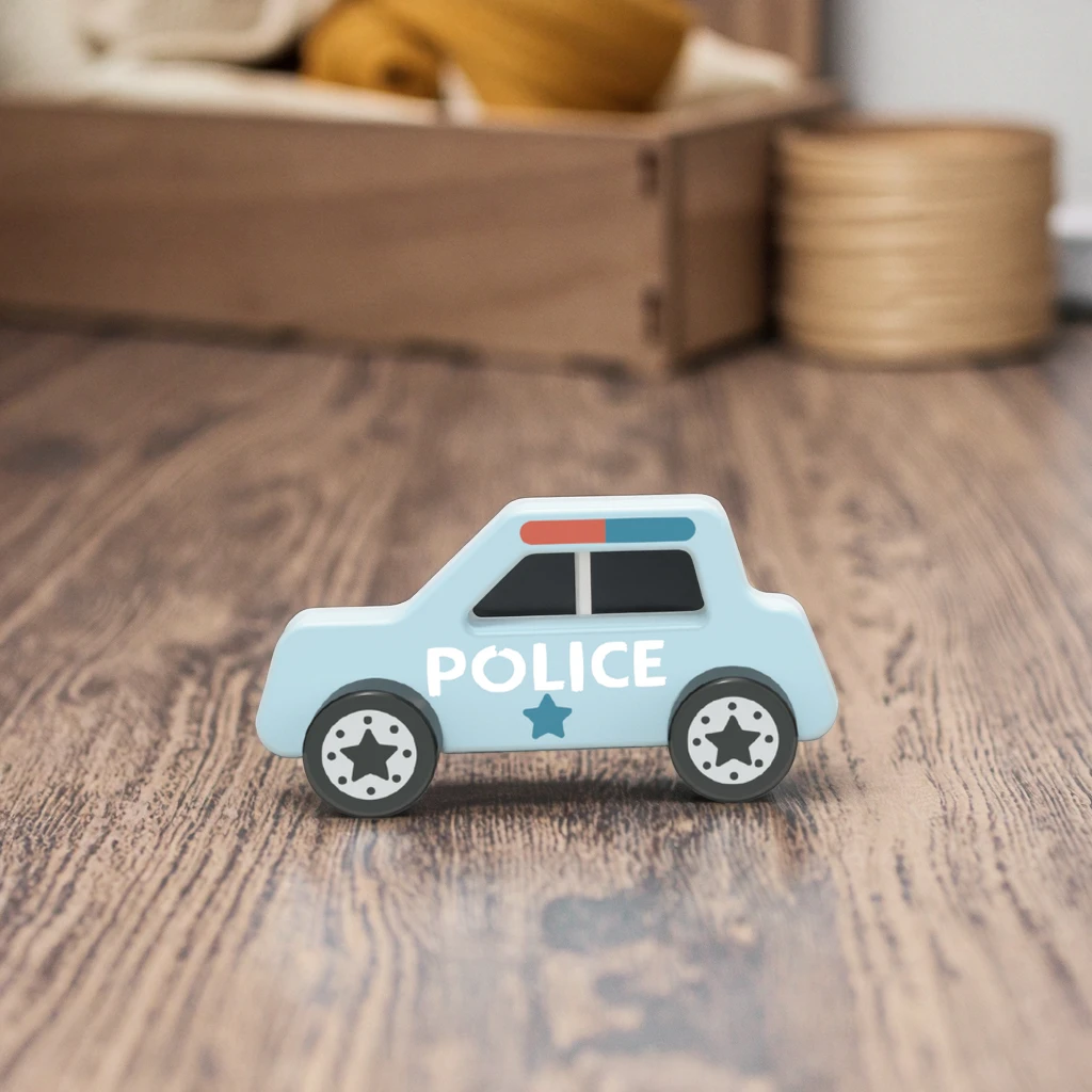Unisex Montessori Educational Pretend Play Wooden Police Car Toys Nontoxic for 18 Months+ Children Fun Preschool Play Unisex