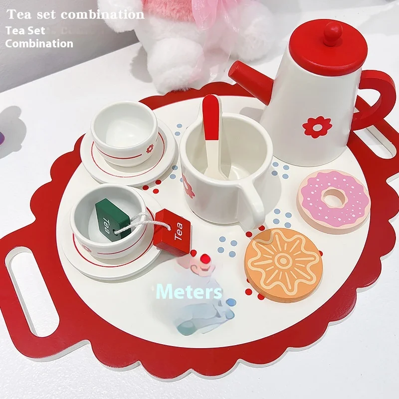 Fun Wooden Simulation Kitchen Set Preschooler's Educational Pretend Play MDF Box Dessert & Afternoon Tea Tableware