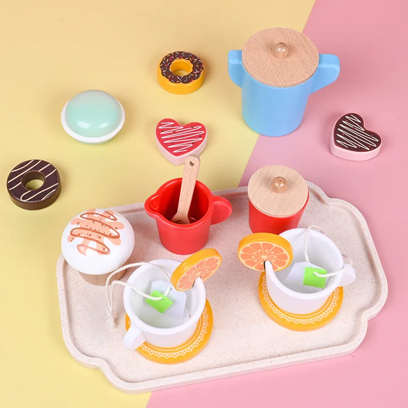 Children's Wooden Pretend Play & Preschool Kitchen Toys Set Early Education Simulation with Afternoon Tea Dessert & Cake Package
